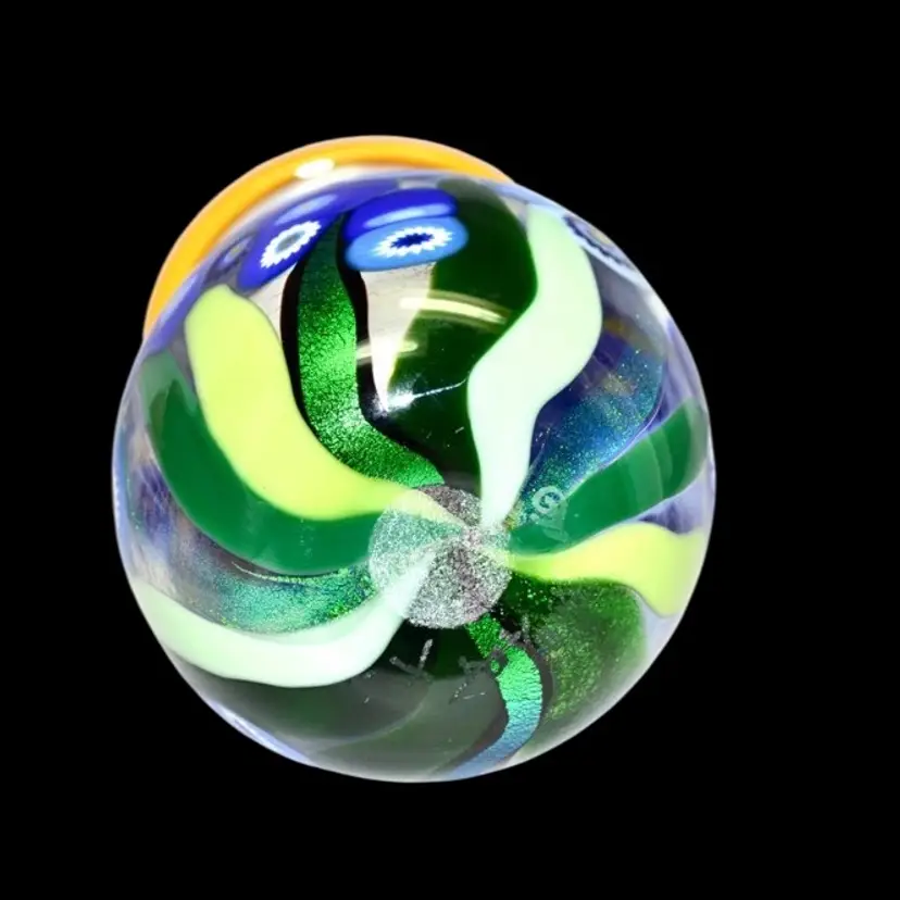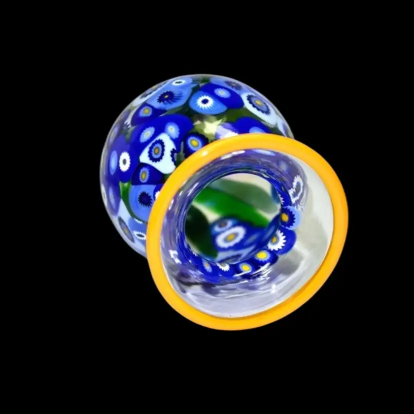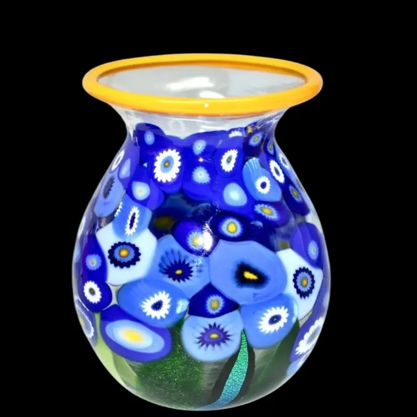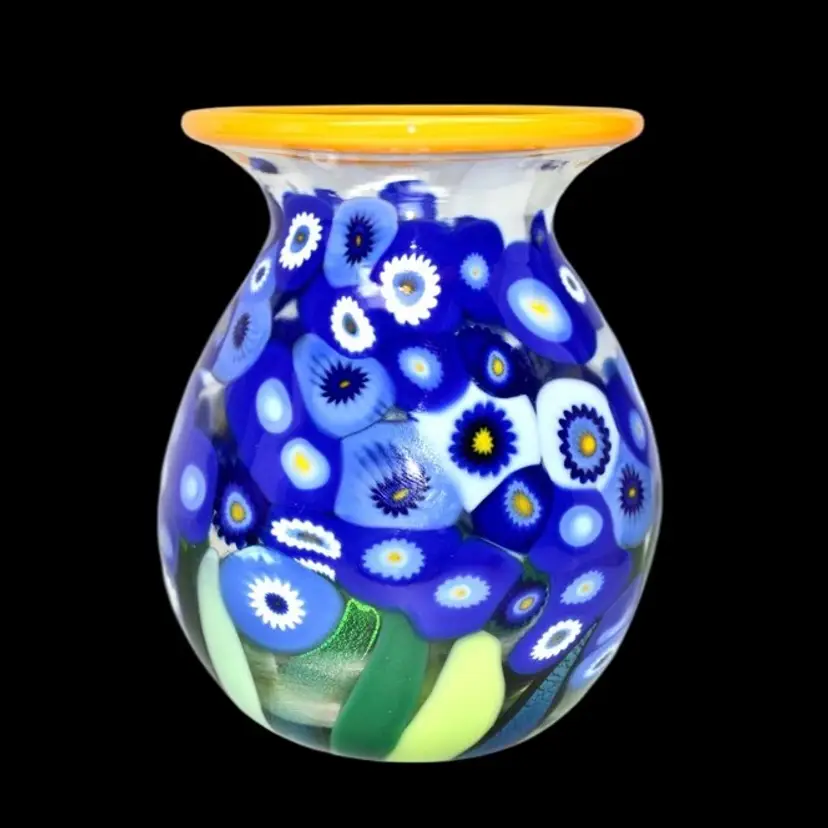 Mad Art Studios Primary Millefiore Dichroic Leaf Rimmed Art Glass Vase 4” Signed No Noted Flaws