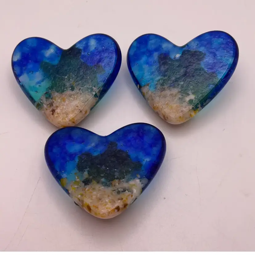 Small, fused glass heart, kiln made with love by me! Each heart is unique and varies in color placement, bubbles and depth of field. Shiny on the front, textured on the back, approximately 1 3/4 x 1 3/4-inches. Made with Bullseye glass. Price is for one heart. Multiples available, you may not get the turtle shown.
