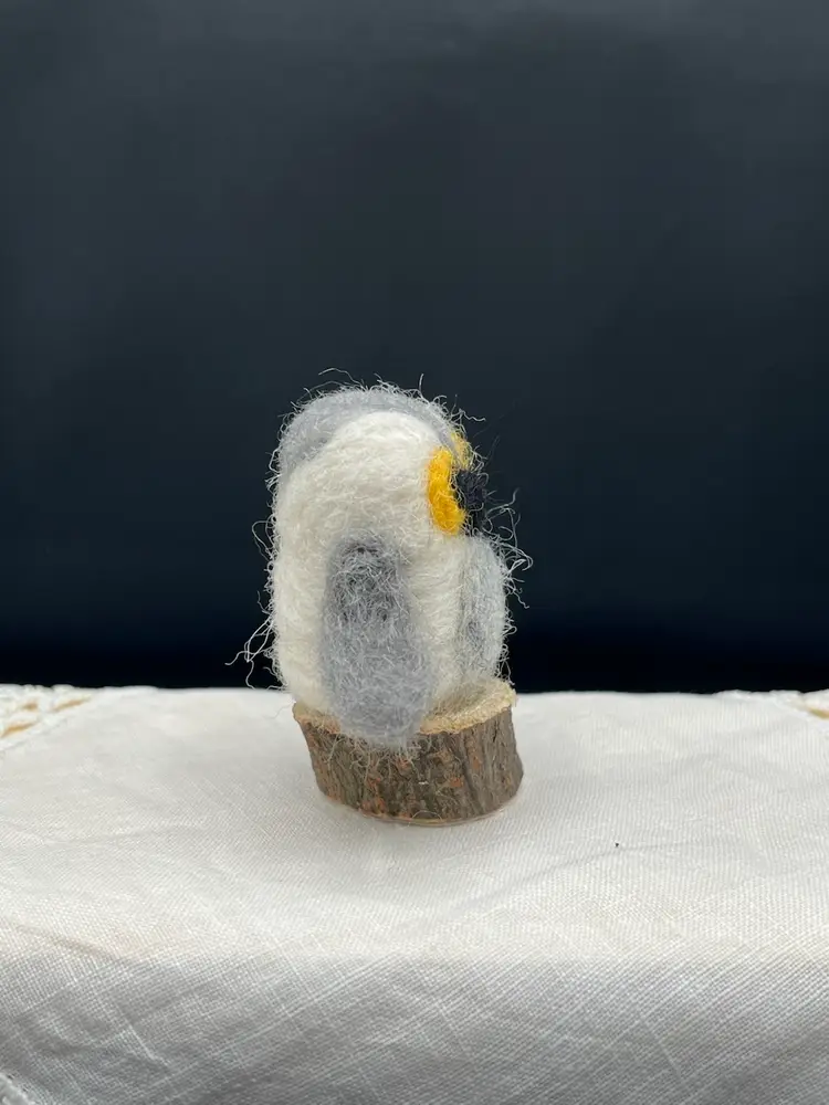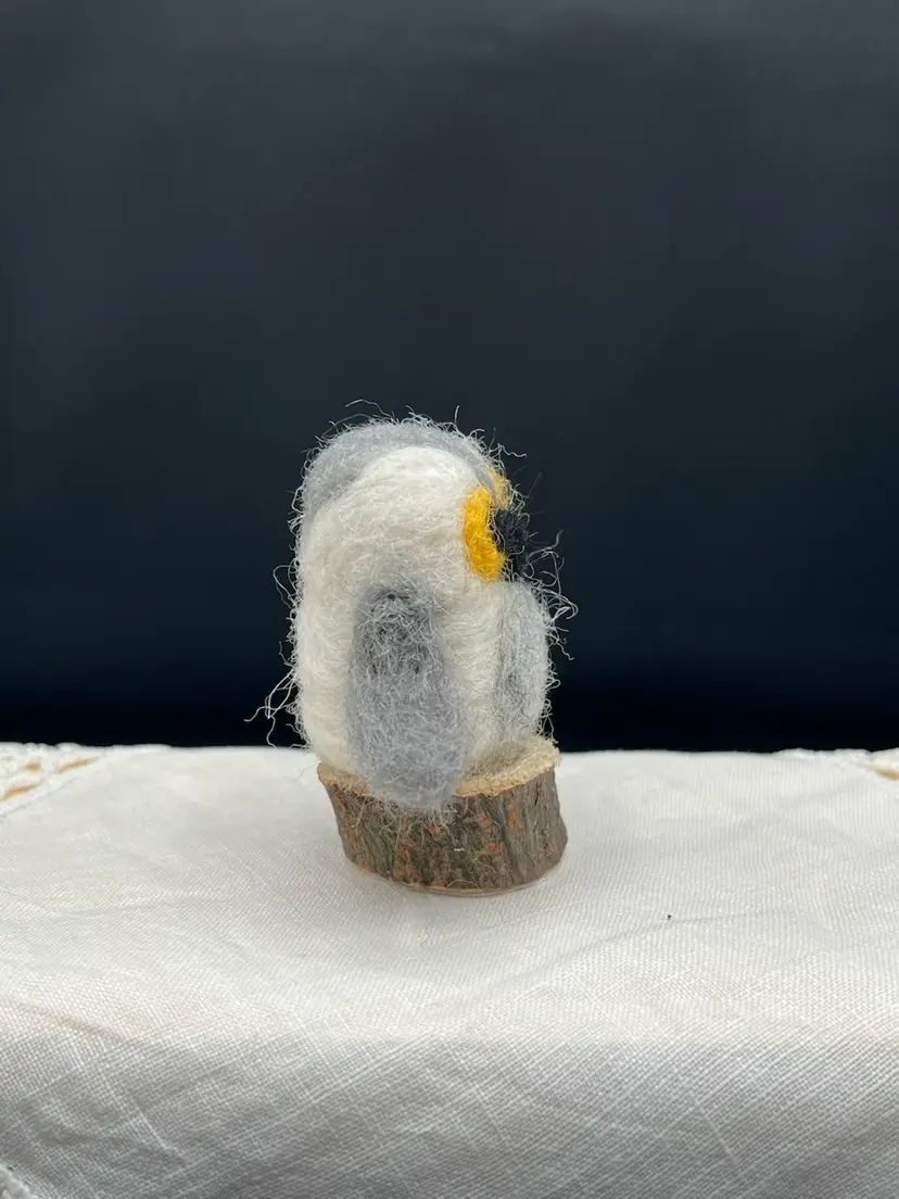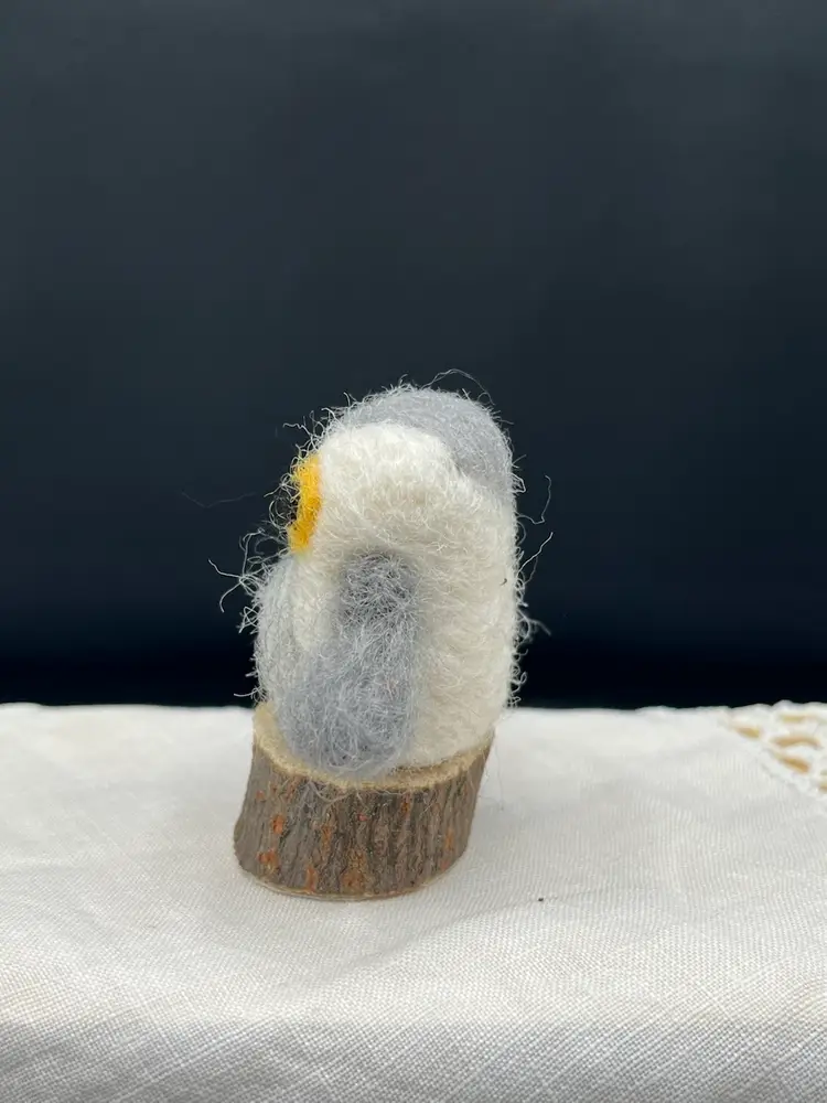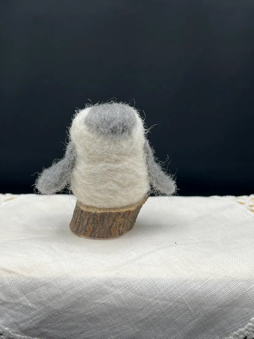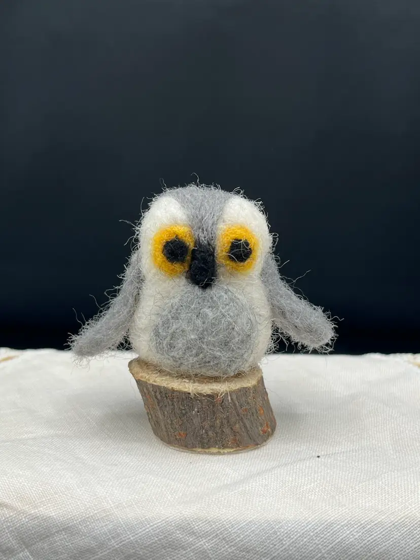 Hand needle felted little grey owl mounted on wood slice. 2” x 2”