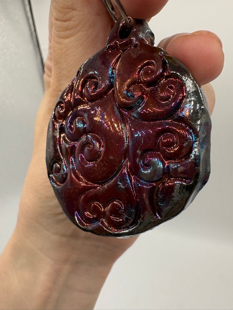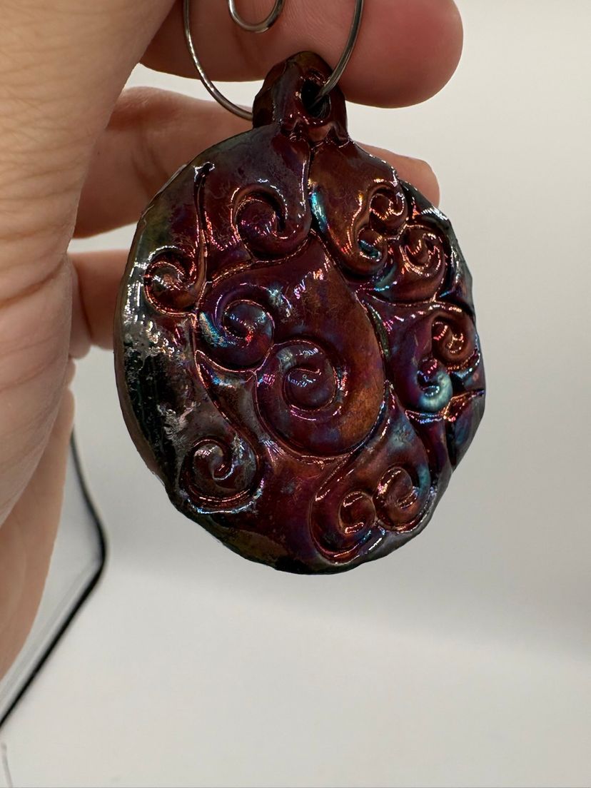 Made By Me - Raku Swirl Ornament #4 Controlled Chaos Pottery 1 1/2”