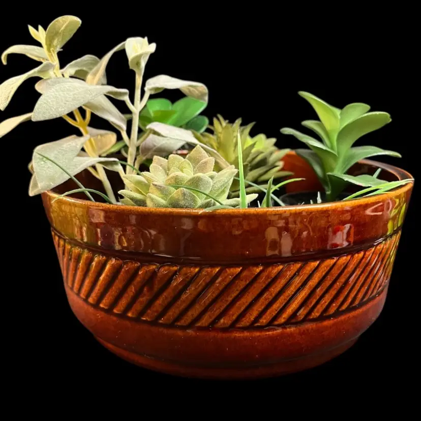 This is a gorgeous piece and very versatile-See pics (Succulents not included). It is in very good vintage condition and has no call outs. Measures approx 3.5"H, 8" Diameter, 1 Lb 13 Oz