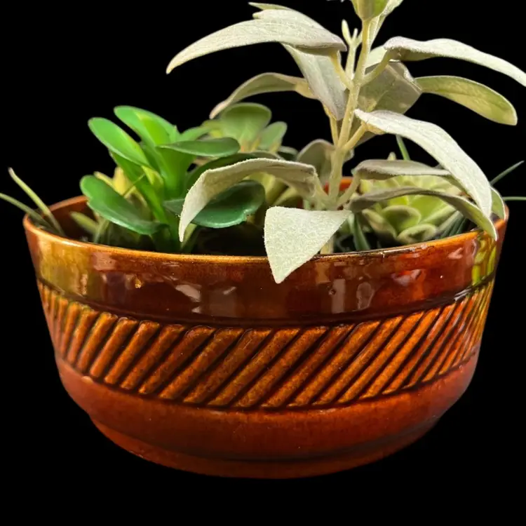 Made for FTD in 1979 By HAEGER USA-Brown Pottery w/ a Decorative Band Around Middle-Use as a Bowl or as a Planter