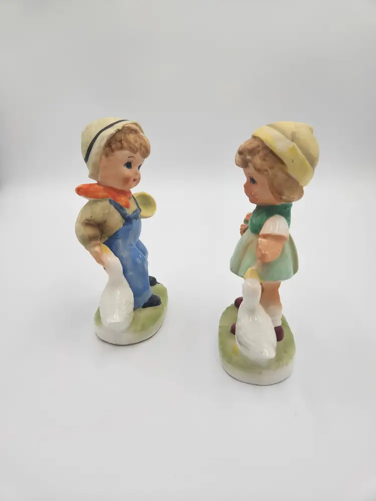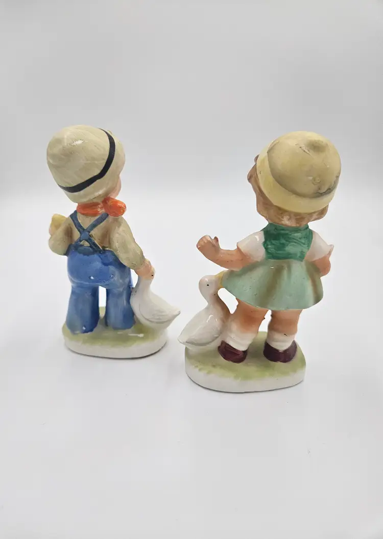 #B28 Made in Japan Boy and Girl with Goose Figurines