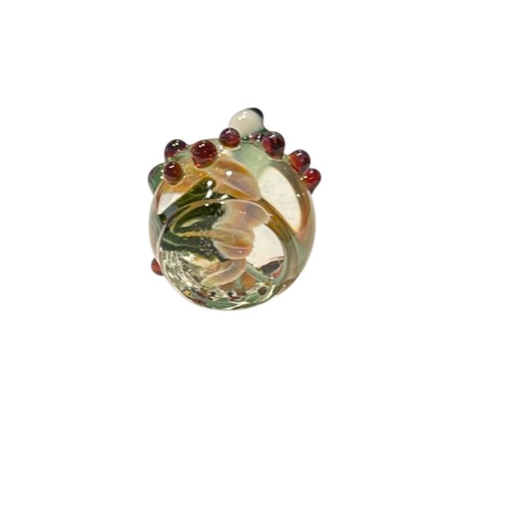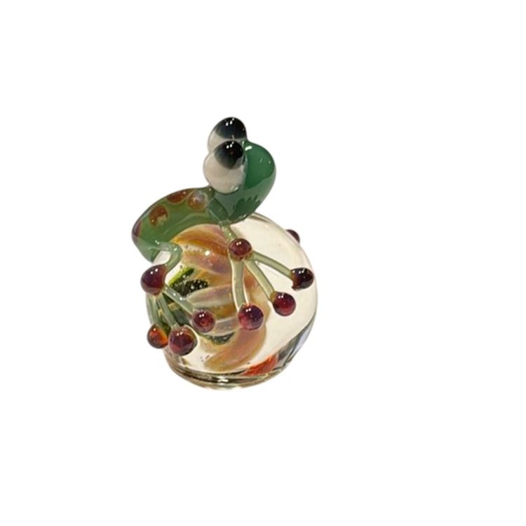 Marble Or Mini Paperweight - Boomwire Art Glass Frog On Lampwork Flower Marble - 1.75”