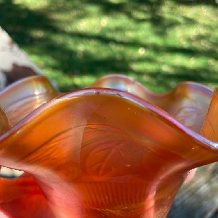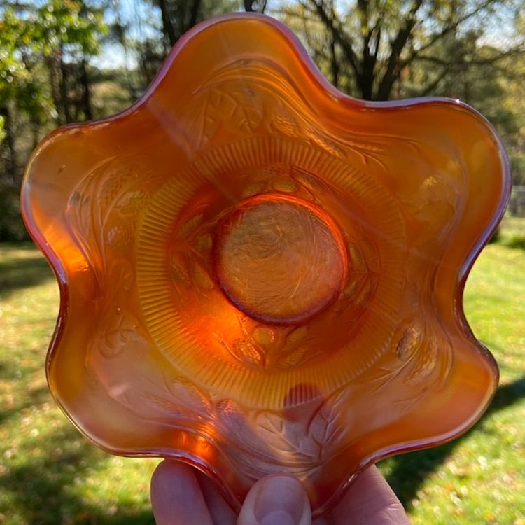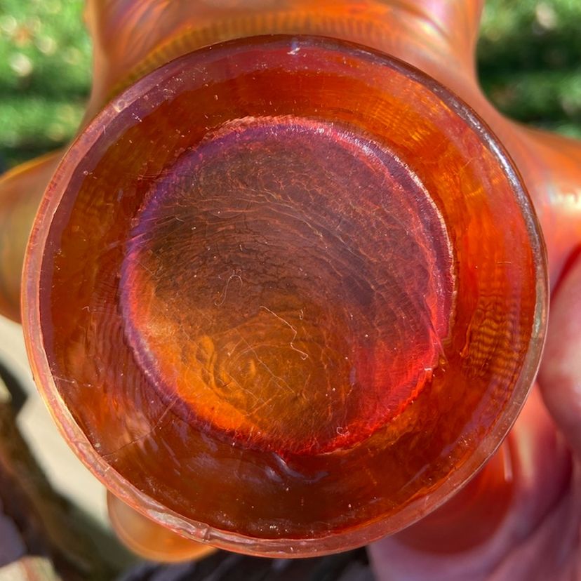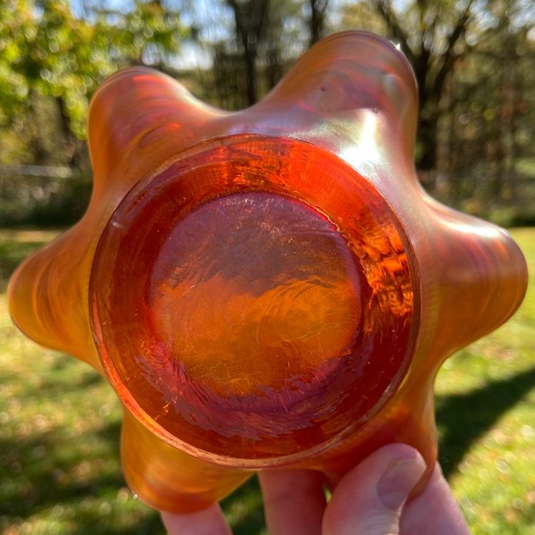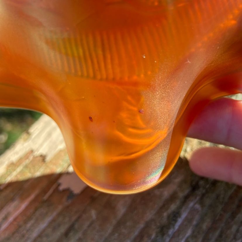 Approx: 3.25”h x 5.75”w. Pre-owned condition. No chips or cracks. Bubbles, straw marks and maybe some scratches on interior bottom. See images as part of description.