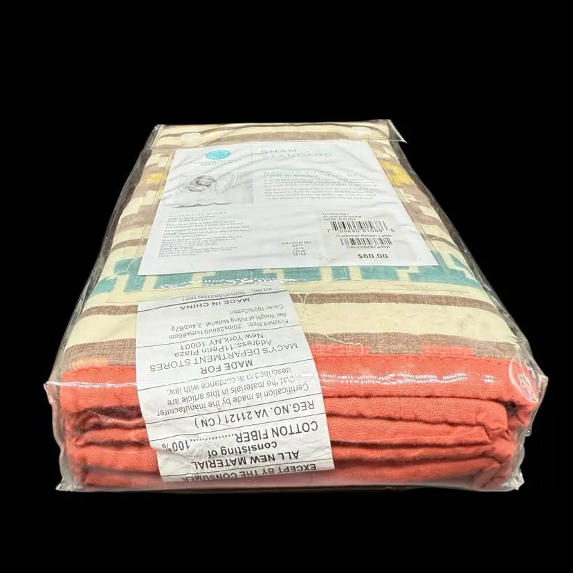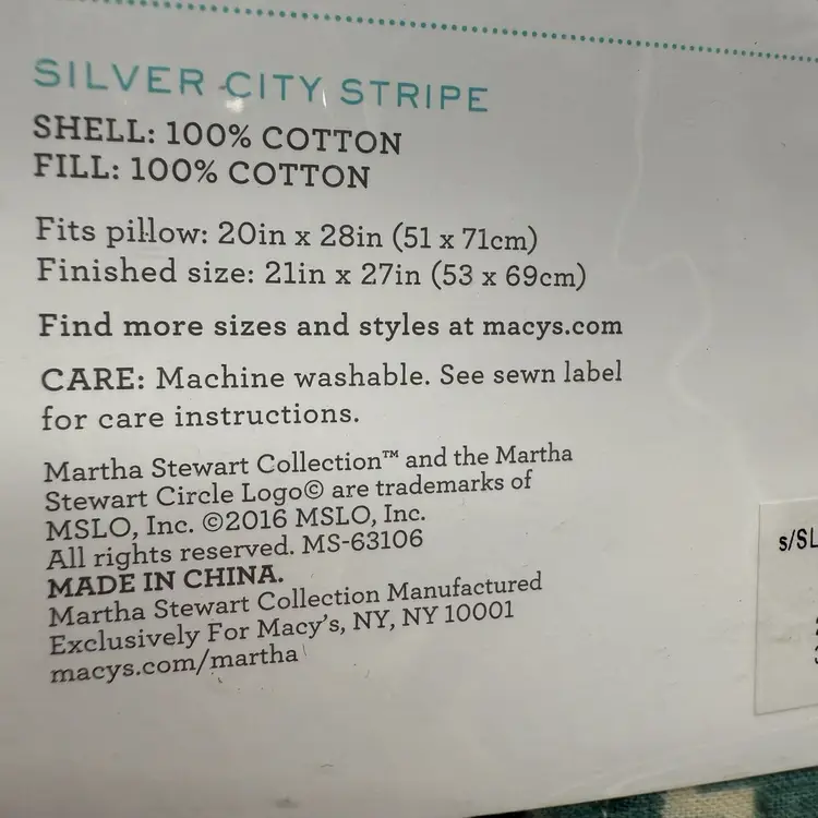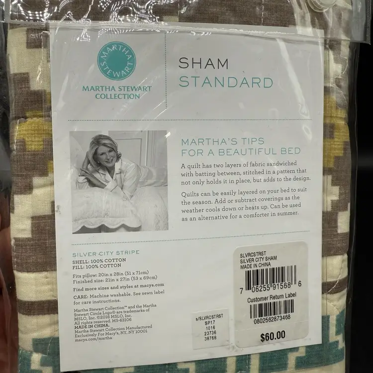 The Martha Stewart Collection Silver City Stripe Standard Pillow Sham is a luxurious addition to any bedroom, featuring a geometric quilted design in a multicolor pattern. Made from 100% cotton, this rectangular pillow sham fits a 28 inches x 20 inches pillow, and has a 27 x 21 finished dimension. The traditional and western theme, combined with the rustic-inspired elements, creates a cozy and luxurious feel. This pillow sham is perfect for adding a touch of luxury to your bedding collection.