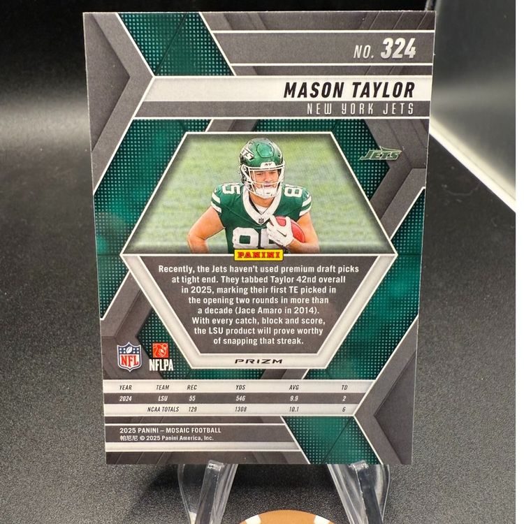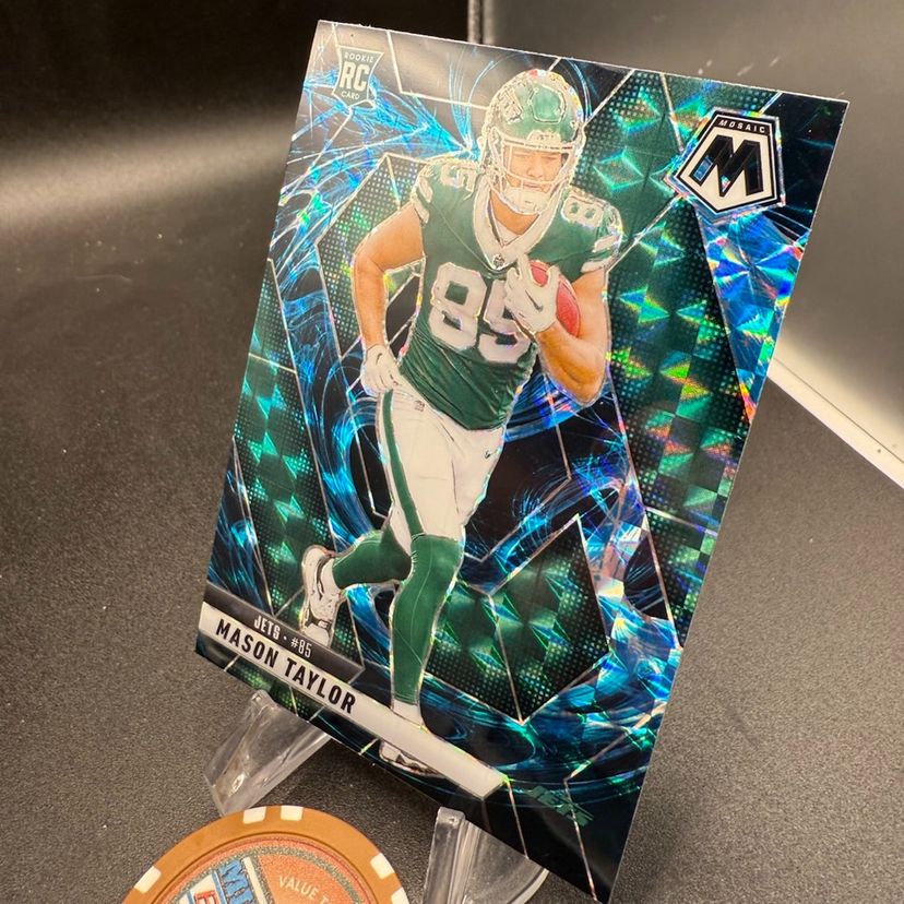 This is a Mason Taylor Genesis case hit RC from 2025 Mosaic. New York Jets