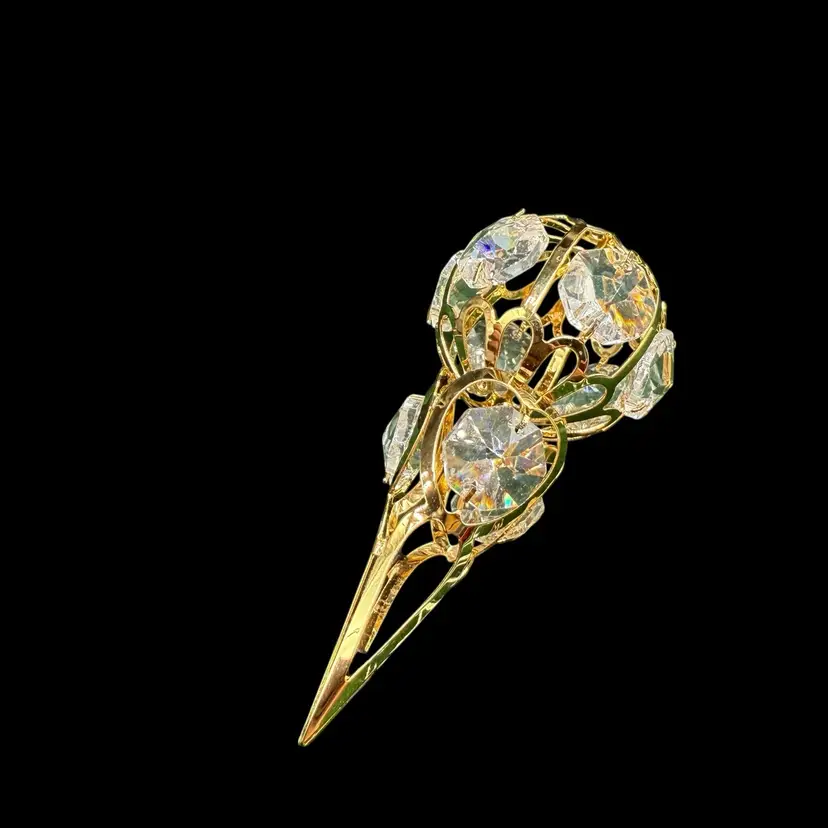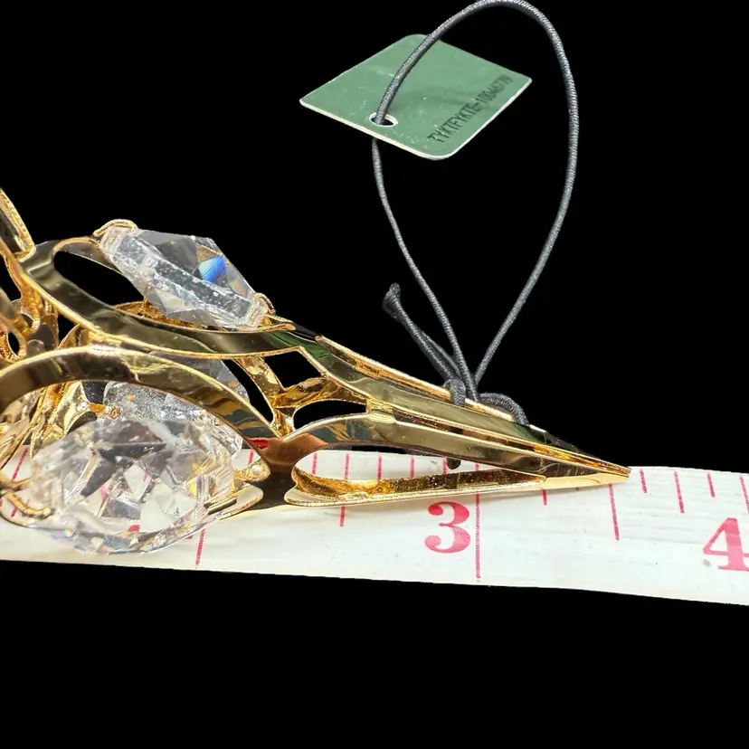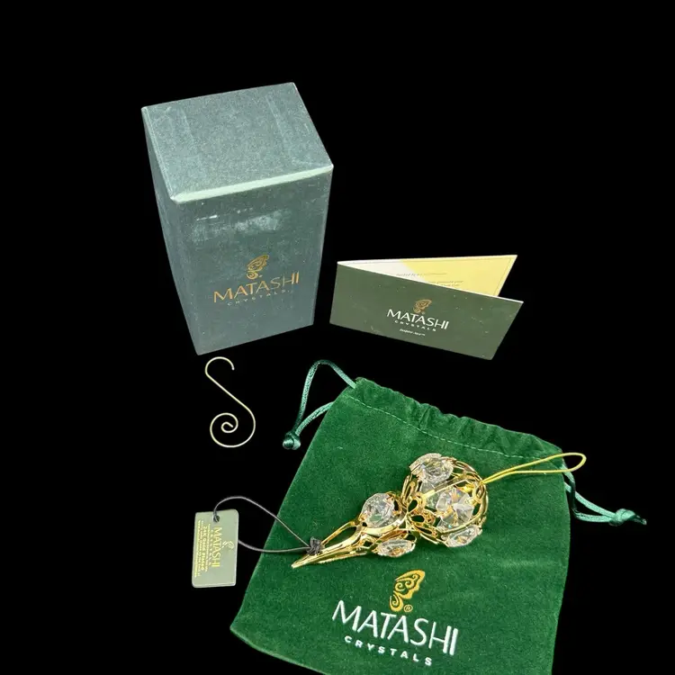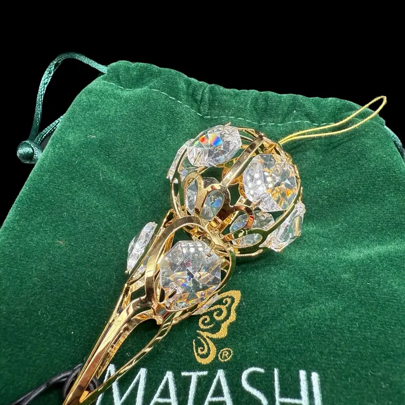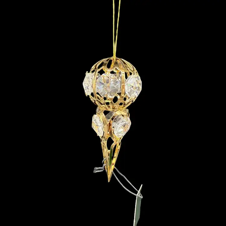 The Matashi 24K Gold Plated Crystal Studded Icicle Ornament is a beautifully crafted decorative piece perfect for all occasions. Made with high-quality materials including 24kt gold plating, metal, and crystal, this ornament features an elegant icicle shape design in a luxurious gold color. Packaged in a box, this collectible item is a part of the ornaments collection by Matashi, adding a touch of elegance to any holiday or seasonal decor. Made in the United States, this ornament is a perfect addition to any ornate collection.