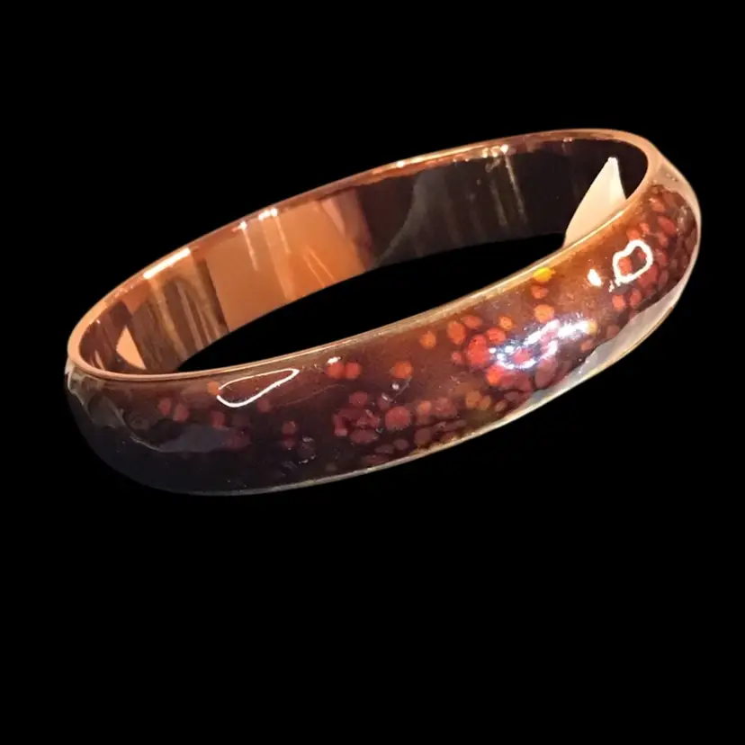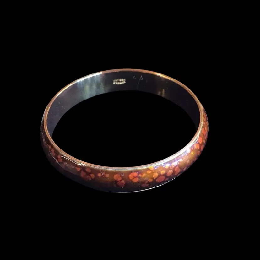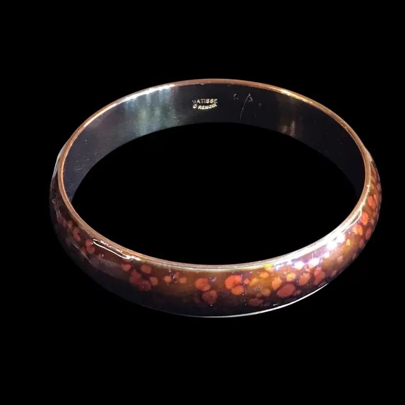 Matisse run one modernist bubble pattern red enamel bangle bracelet. Shiny copper inside circa 1950s to 1960s . r1/2 inch tall by 2 9/16 inch diameter. Very good condition. Very mild scratching on interior as pictured.