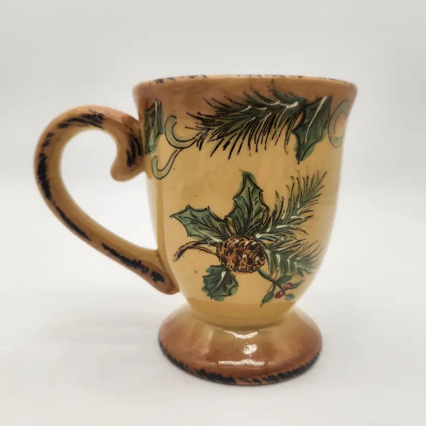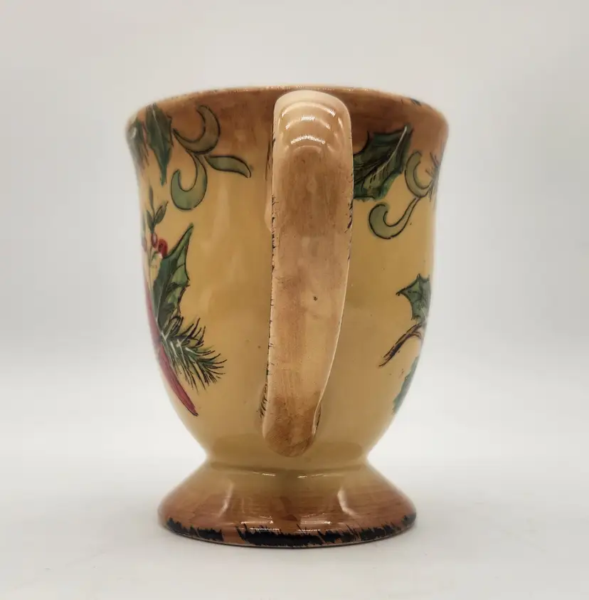 Large enough for the biggest hot toddy (!) - or other cold-weather beverage: this mug comfortably holds a full 16 oz. with room to spare. This would also make a great gift filled with candy or tea bags. Cardinals are often used in winter or in holiday themes because they are the only northern bird that does not migrate! The northern cardinals are well-adapted songbirds that employ a variety of strategies to survive the challenges of winter. Measurements: Keywords: Christmas mug, holiday mug, cardinal mug, pine cone mug, holly mug, footed mug, stemmed mug, Cottagecore, Farm House, ceramic mug, drinkware, coffee cup, tea cup, hot chocolate mug, winter mug, seasonal mug, kitchenware
