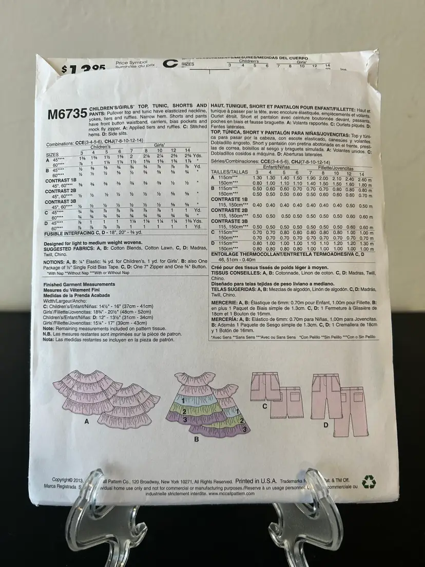McCall’s Pattern M6735 Girls Too Tunic Skirts Pants Uncut FF Please see photos. Let me know if you have any questions. Single item offers and bundle item offer seriously considered. Thank you for stopping by.