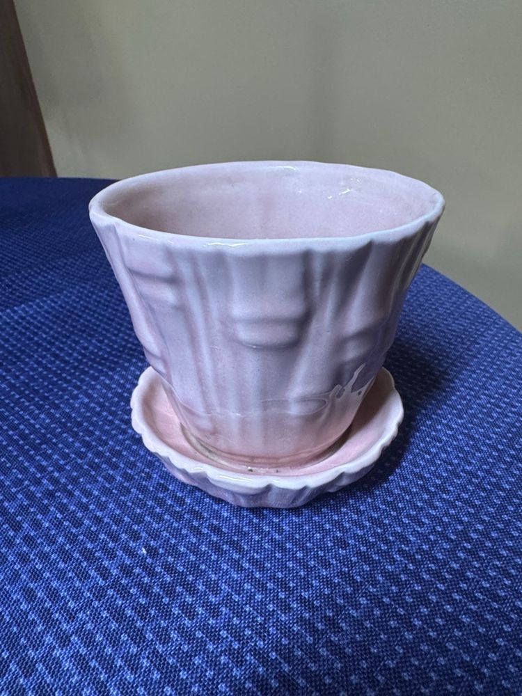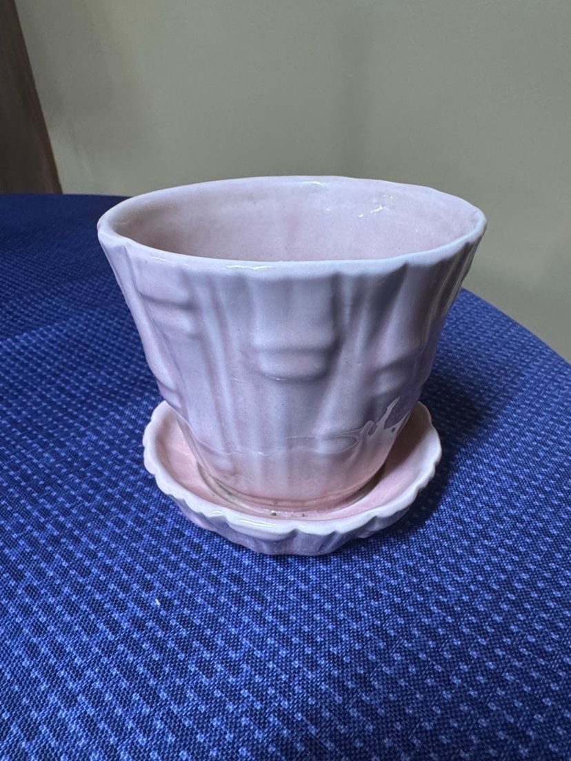 Enhance your home decor with this elegant pink ceramic planter. Perfect for adding a touch of color to any room. Includes a matching saucer for convenience. Vintage McCOY Bamboo Pattern Flower Pot Planter / Attached Saucer. 4” tall 4.25” diameter Excellent condition with no breaks or chips (1045930252)