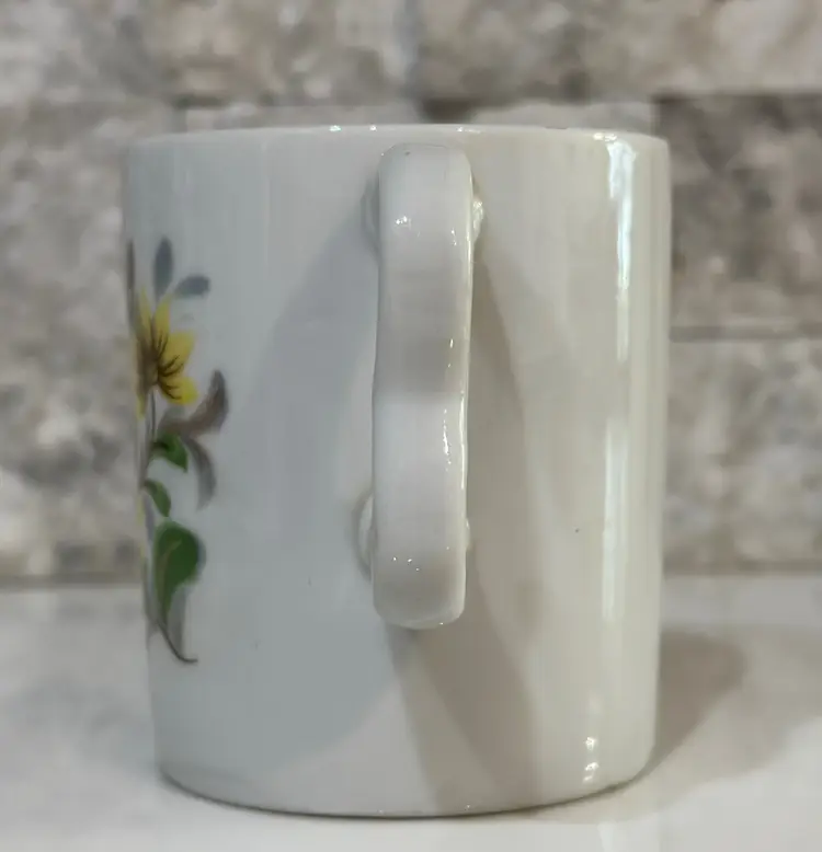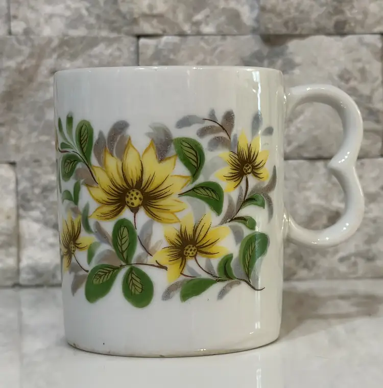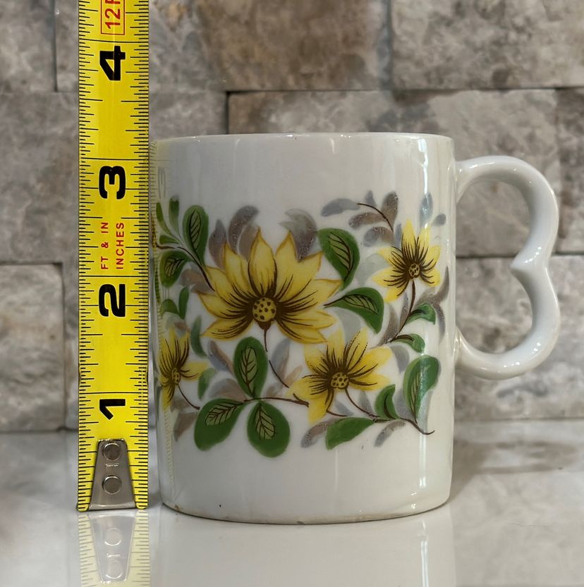 Beautiful vintage mug with hand painted yellow flowers. No damage, excellent condition.