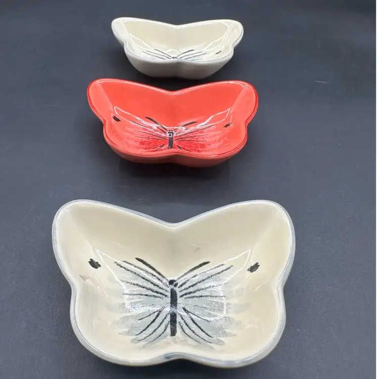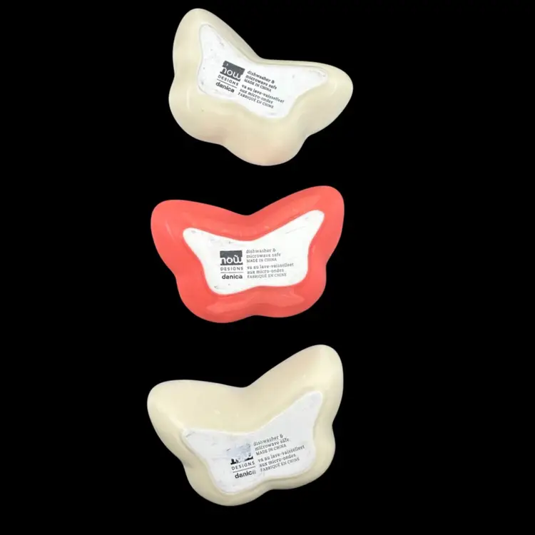 Very sweet butterfly shaped ceramic pinch bowls for herbs, trinkets, change, whatever you like! Good condition, no chips or cracks, dishwasher safe! Set of 3 bowls.