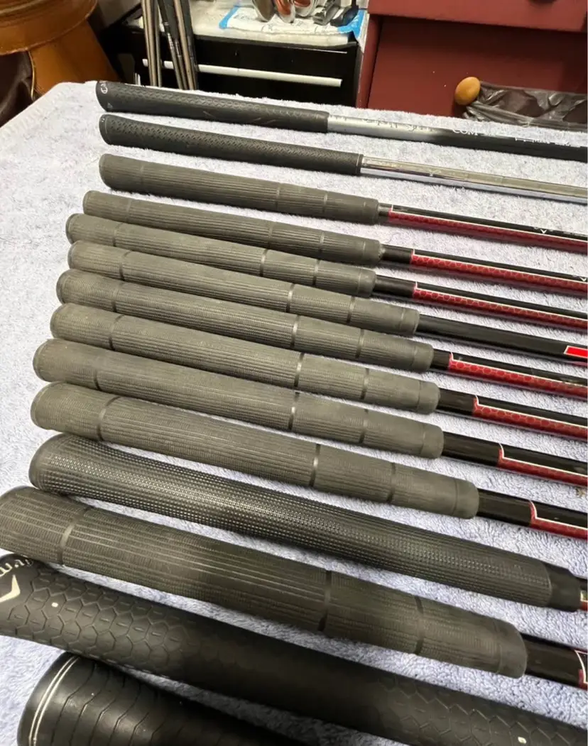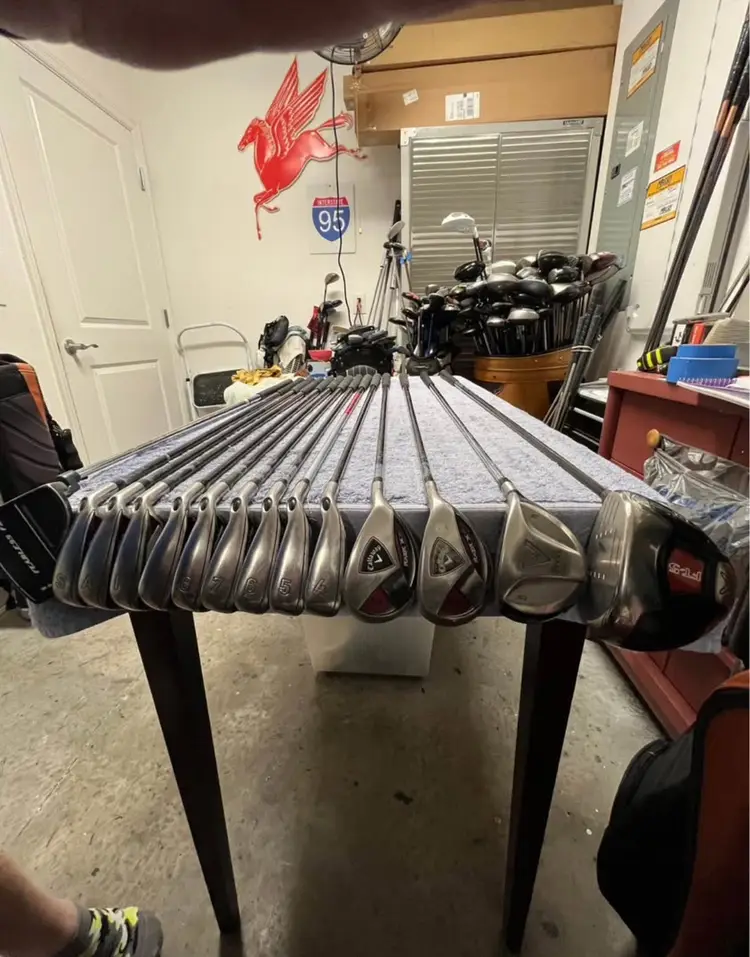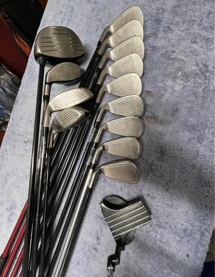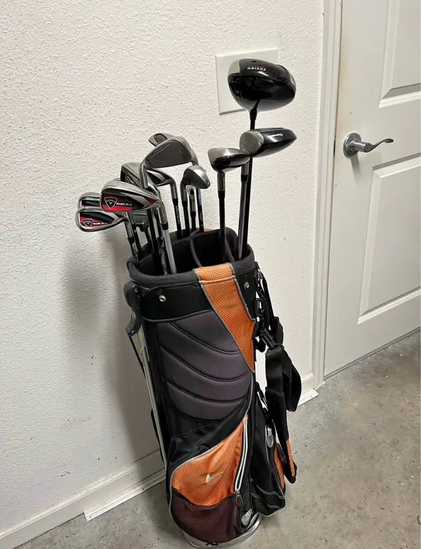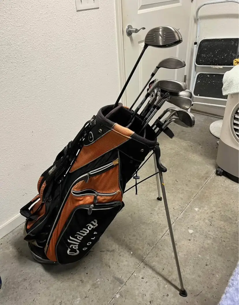 Men RH Callaway RAZR X club set. ALL Callaway!!!! Driver 9.5. FT-5 3 wood—V steel 4/5 hybrid RAZR X 4-9, Pw, Sw, Aw—RAZR X Putter— Ram Fearless Callaway stand bag Graphite, larger grips on most and are in great shape. A flex on all but driver is Stiff. This is a great set for beginner, intermediate, casual player spare set at home want to step up your game this would be a great set. It has a little bit of all the types of clubs for you all packaged up in a nice Callaway bag. I’m ready to go on the course.
