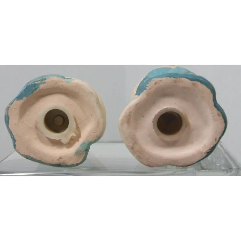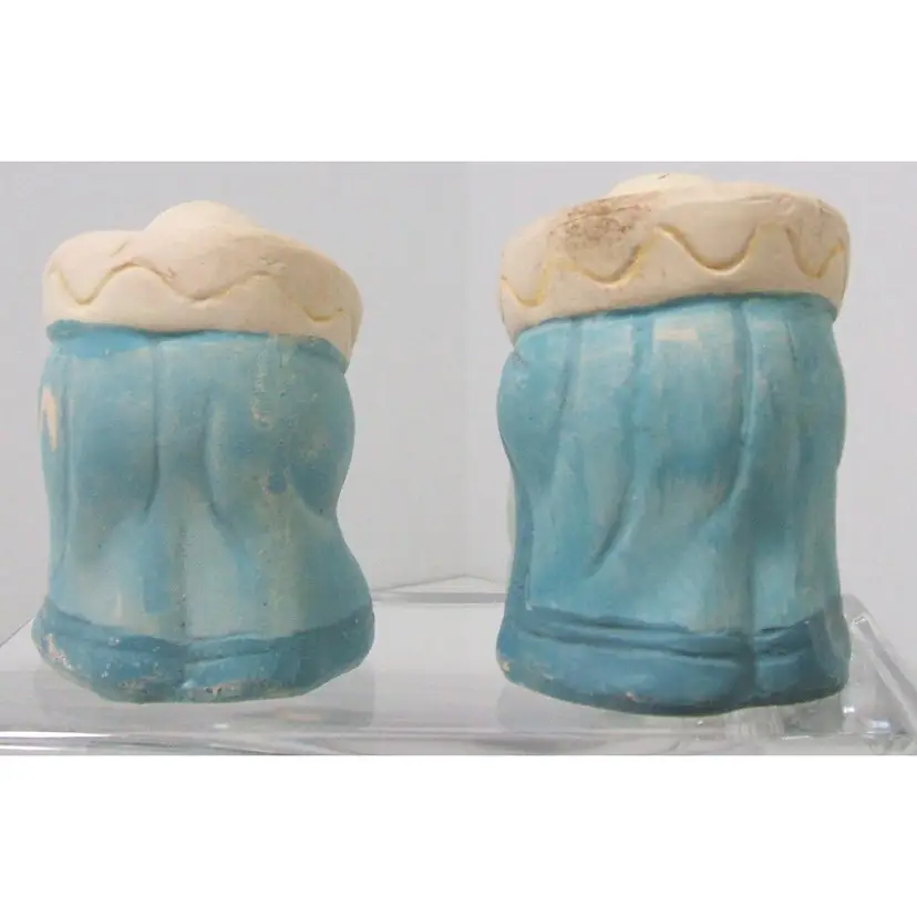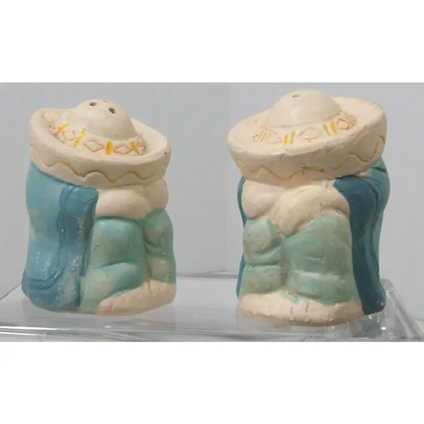 This set of 2.5 inch tall salt & pepper shakers are of men taking their siestas. They are wearing blue clothing with white sombreros. They have their stoppers. They are in great condition. They have been kept in a smoke-free, pet-free and vape-free environment.