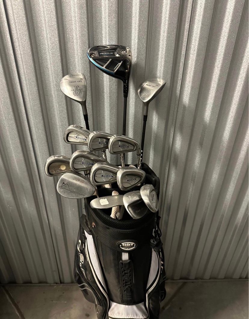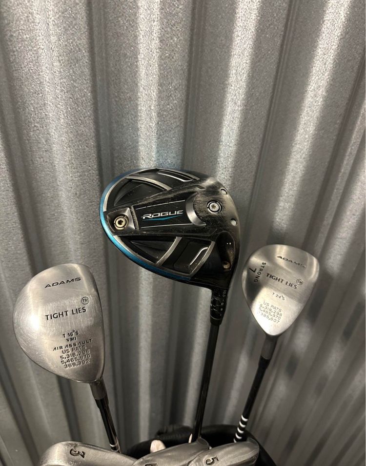 Includes: • Callaway Rogue Driver • Adams Fairway Woods • Callaway Irons (4-PW, SW, LW) • Putter • Golf Bag with Golf Balls
