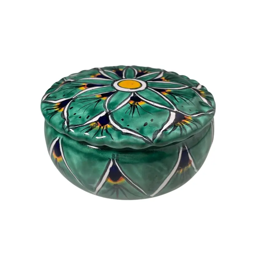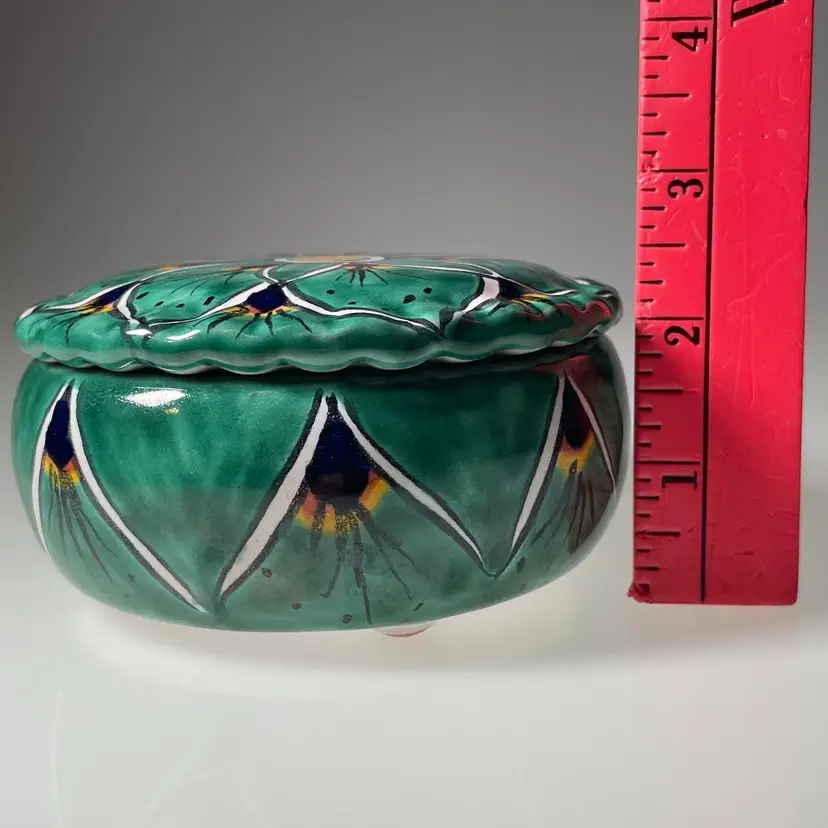 Measurements are approximate: 2.5 inches tall with lid, 4.5 inches wide