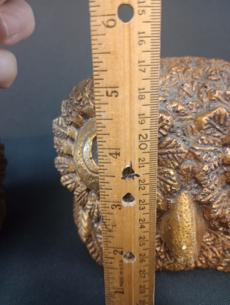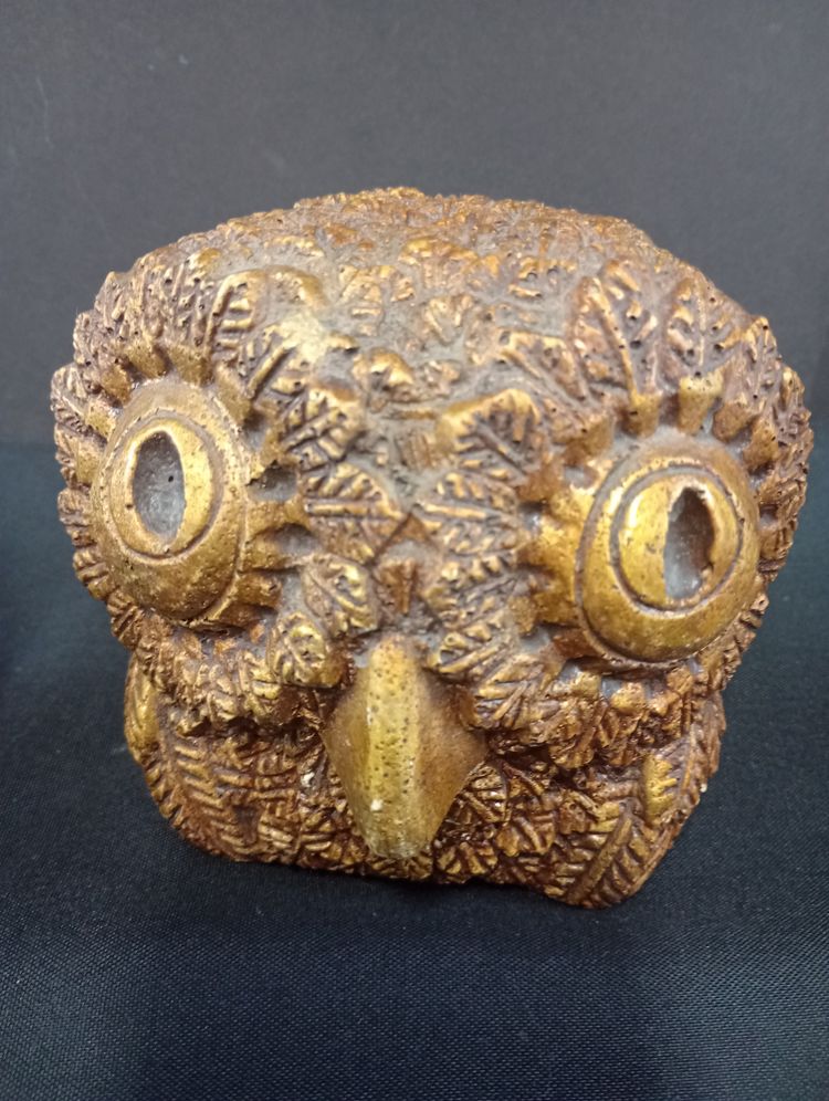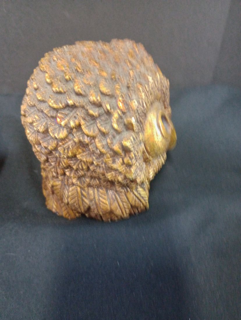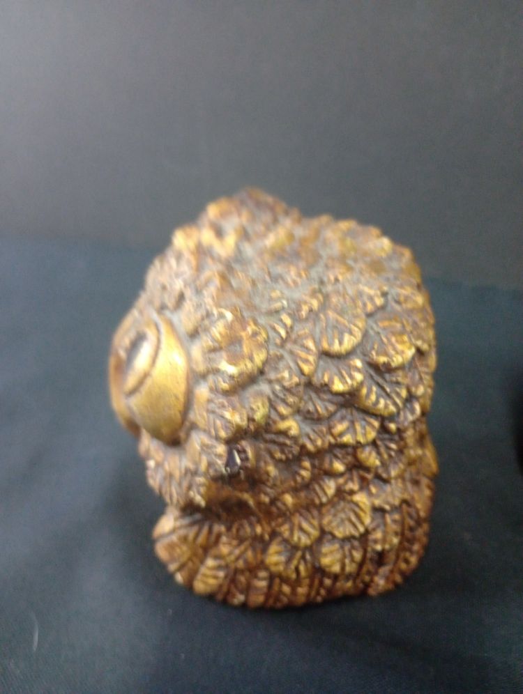 The Mid Century Gold/Bronze Owl Mom and Child 2 Piece Figurine Set is a collectible sculpture perfect for any room in your home. This original piece from the late 20th century features a charming owl family design in gold/bronze tones, adding a touch of vintage elegance to your decor. The figurine set is unboxed and can be displayed on any occasion, making it a versatile and unique addition to your collection.