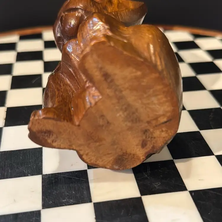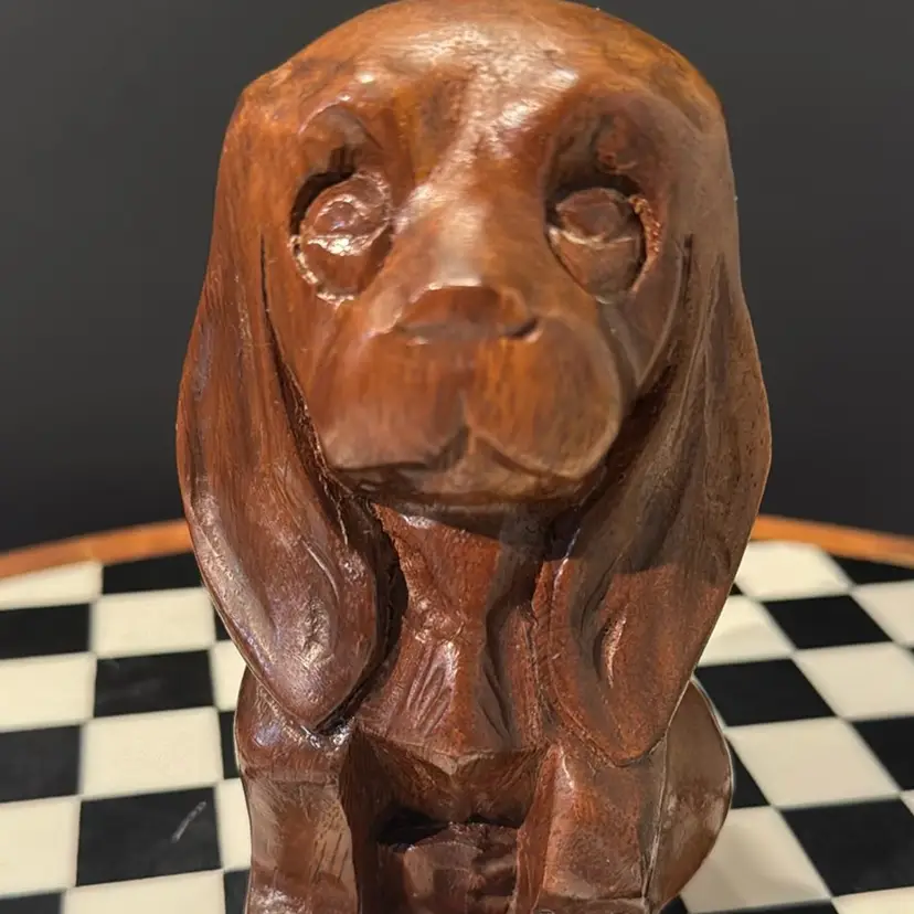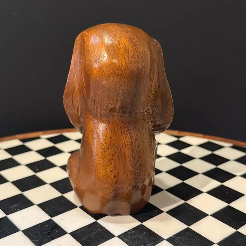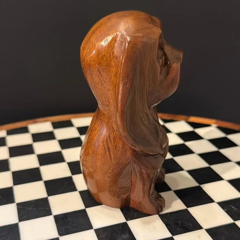 Adorable hand carved mid-century wooden long eared dog. Perfect vintage condition measures 5 inches tall.