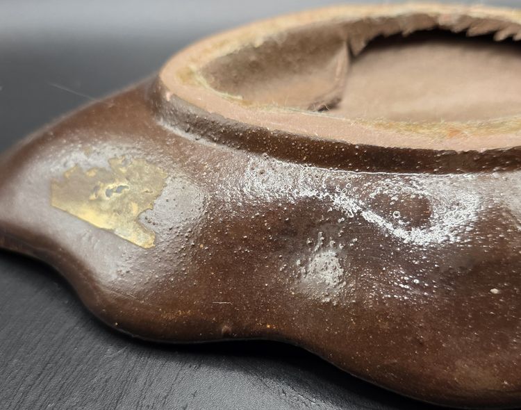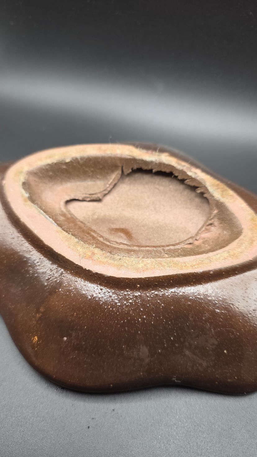 🎨 Glaze: Glossy crackled red center; speckled brown/beige rim
