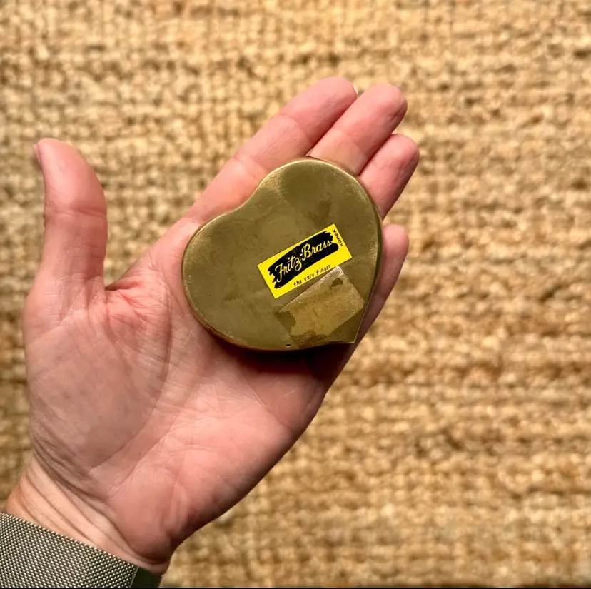 This charming mid-century heart-shaped trinket tray from Fritz Brass adds a sweet and functional touch to any space. Perfect for holding jewelry, coins, or small keepsakes, it combines both style and practicality in a beautifully compact design. Made in Korea, this piece features a lovely vintage feel, with its gleaming brass finish offering a sophisticated touch.