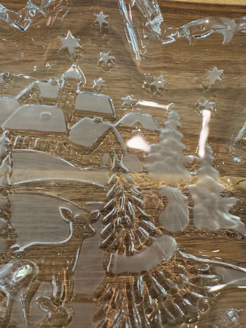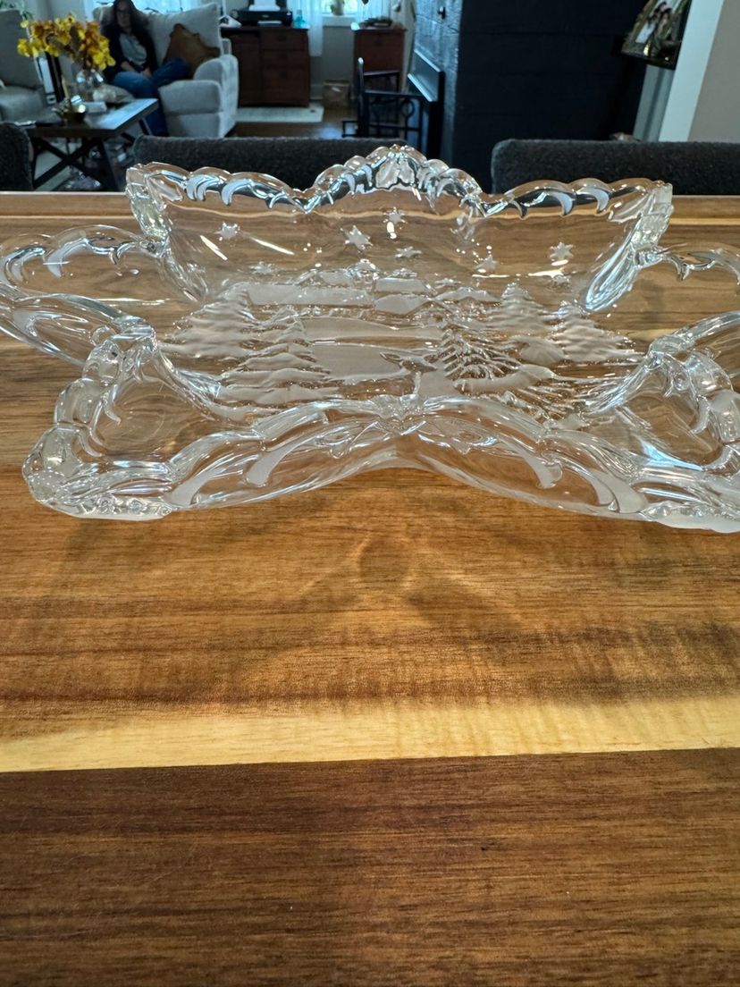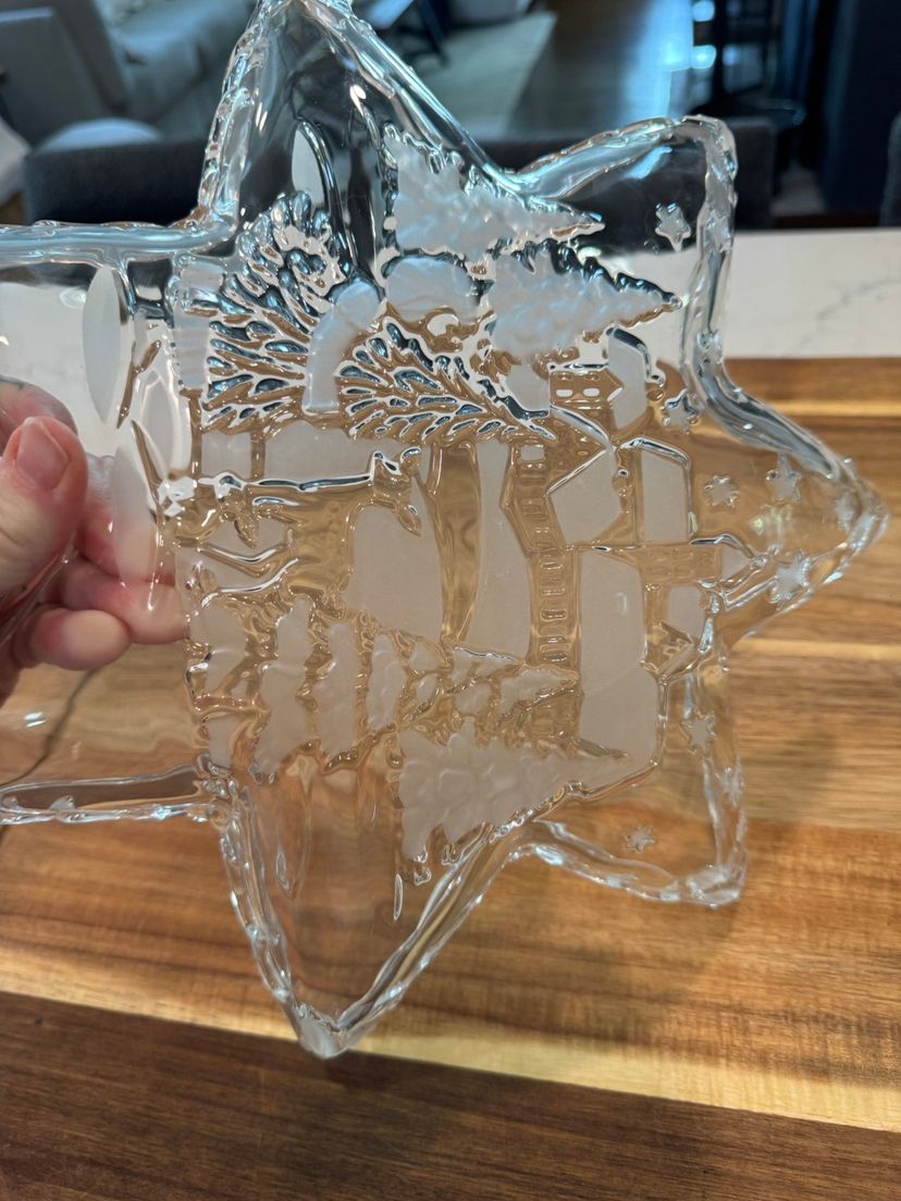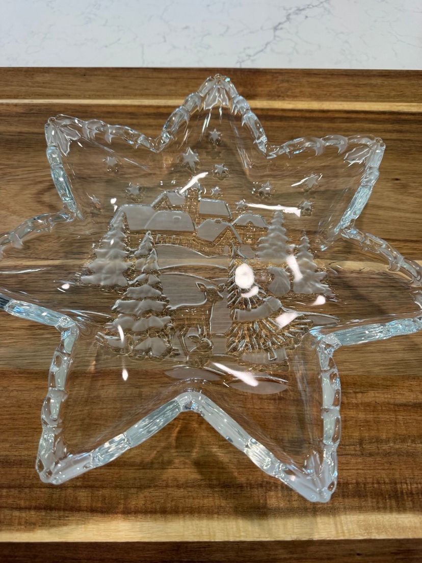 Beautiful 12” star shaped Christmas plate with a snowy woodland scene. No chips or cracks.