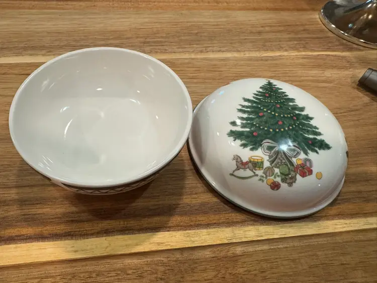 This charming trinket box showcases a festive Christmas tree and toy design, perfect for adding a touch of seasonal cheer to any room. Ideal for storing small keepsakes, jewelry, or as a decorative accent during the holidays. Excelleny pre-owned condition, ready to be a cherished part of your Christmas decorations.