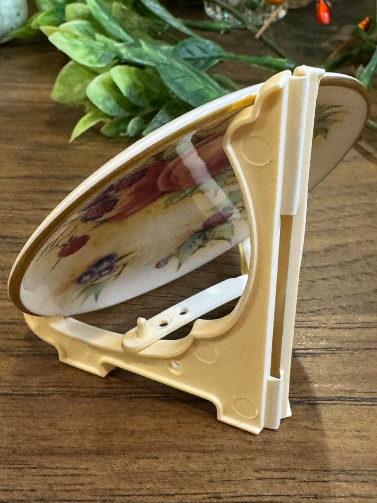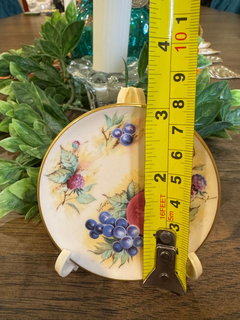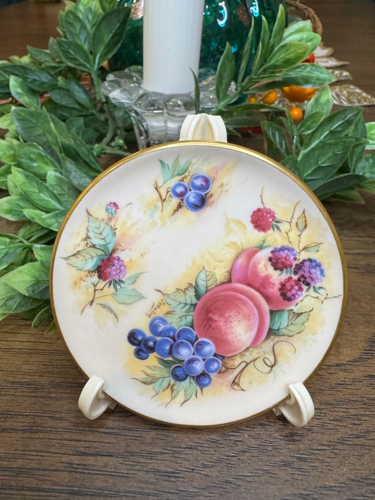 This Crown Staffordshire miniature butter pat or cup plate was #2 in the Franklin Mint Great Porcelain Houses of The World Miniature Plates Collection. The plate features the Orchard Glory pattern.