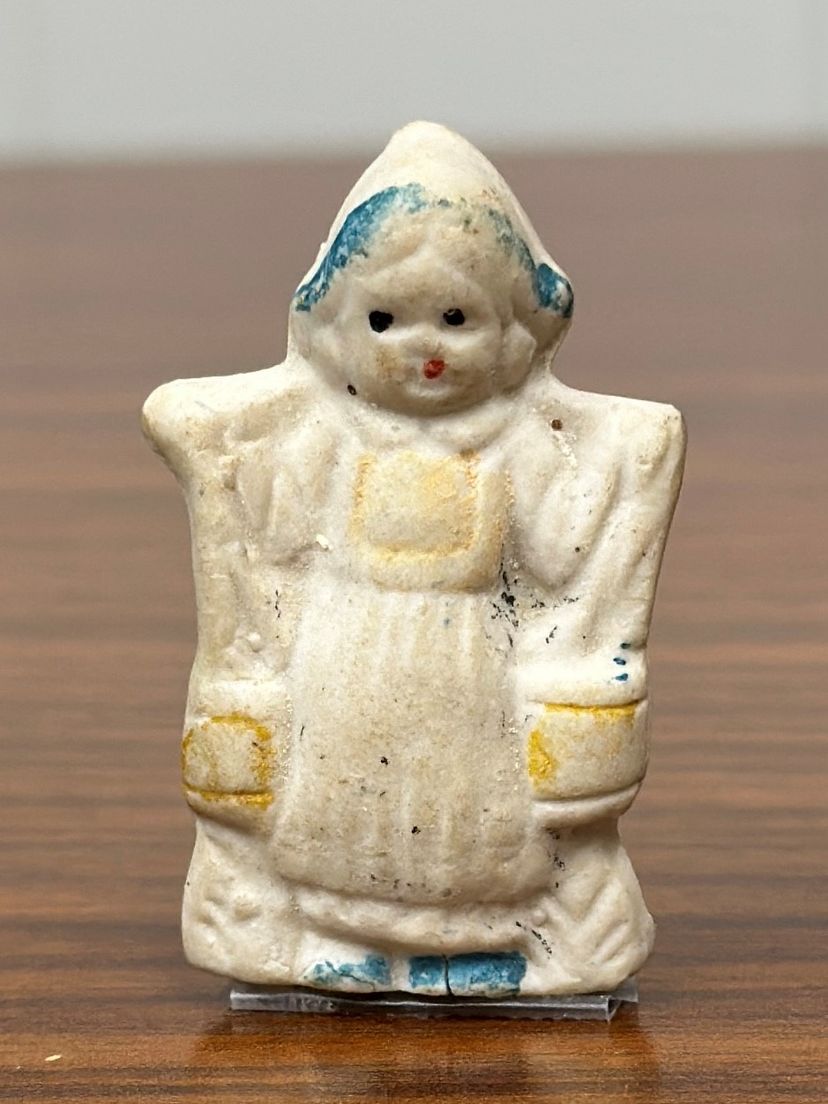 Antique miniature bisque Dutch Girl stamped "Japan" on back. Approximately 1 3/4" tall x 1" wide (base)