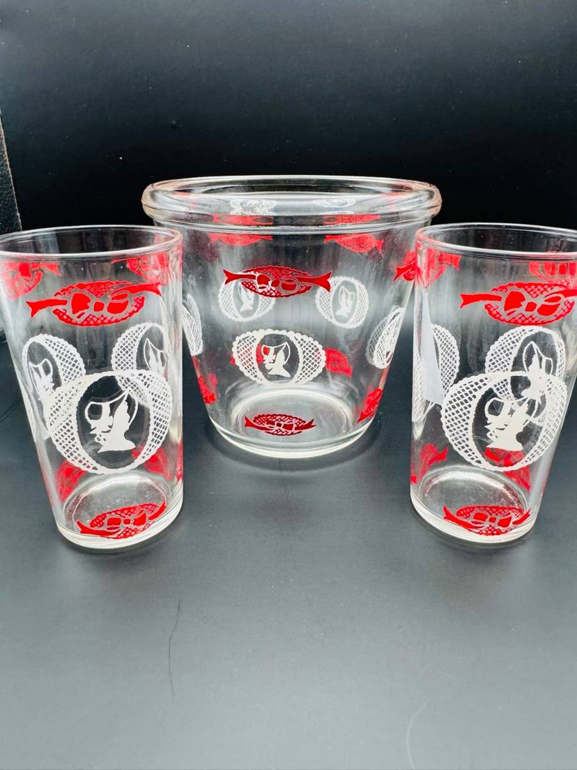 Bucket measures 4 3/8 x 4 5/8 and glasses measure 3 3/4 x 2 1/4 Early Mid-Century Bar Ware