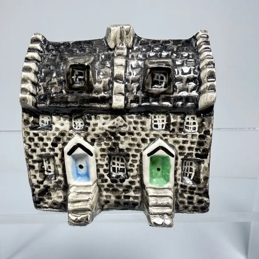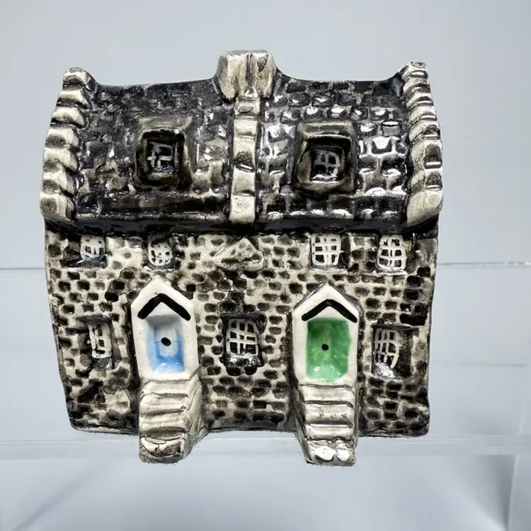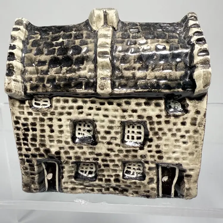 Tey Pottery, Lenwade Norfolk, England, this is part of the collection Britain in Miniature COUNTRYSIDE COLLECTION I beleive. This house came with another that had it's sticker, that's how I was able to ID although I do not know the exact house. Hand painted, measures approximately 2.5 high and long. No chips or cracks. this collection is vintage but I cannot get an exact date. Perfect little figurine for your collection. The first photo is more true to color, black not brown. Sold as shown, please see all photos.