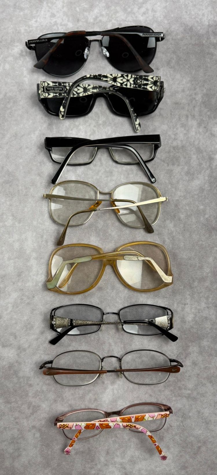 Mixed Lot Of 24 Eyeglasses/Sunglasses Ray-Ban, Kate Spade, CK, Panama Jack, Vera Bradley, Martha Stewart, and more. Also included are 3 Ray-Ban Cases.