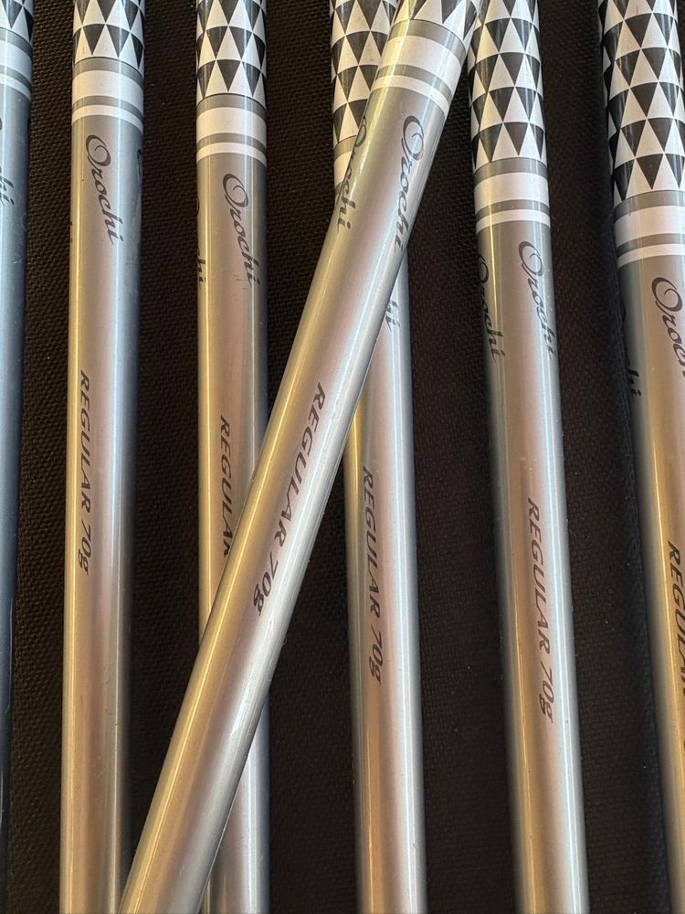 • All shafts are original Mizuno Orochi 70g graphite regular flex, consistent and well cared for.