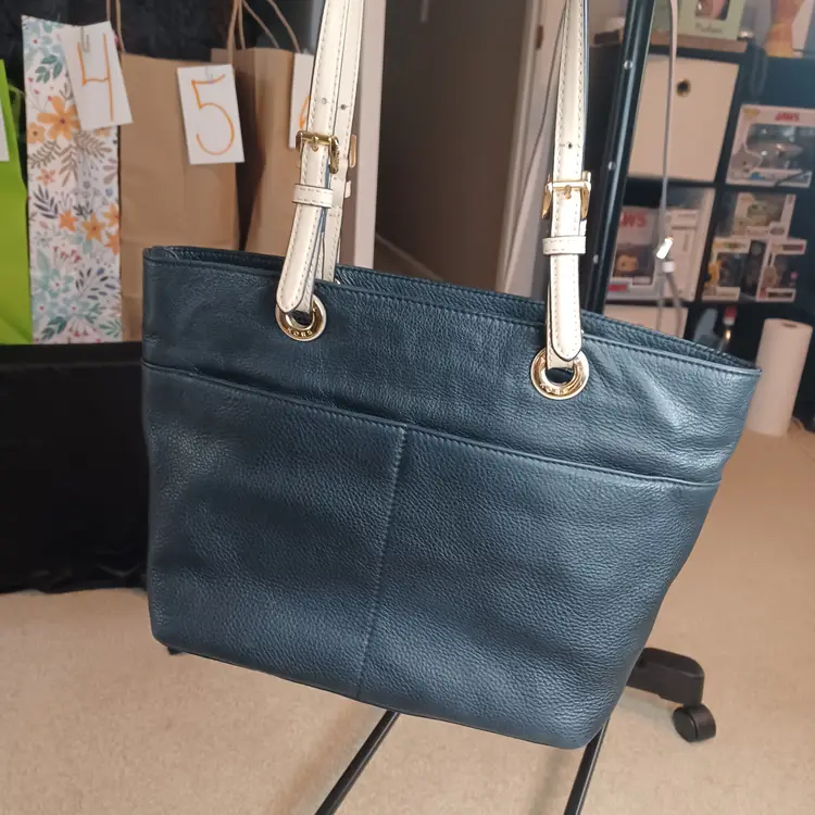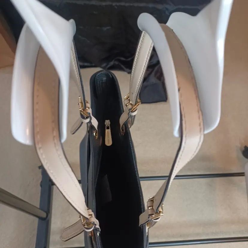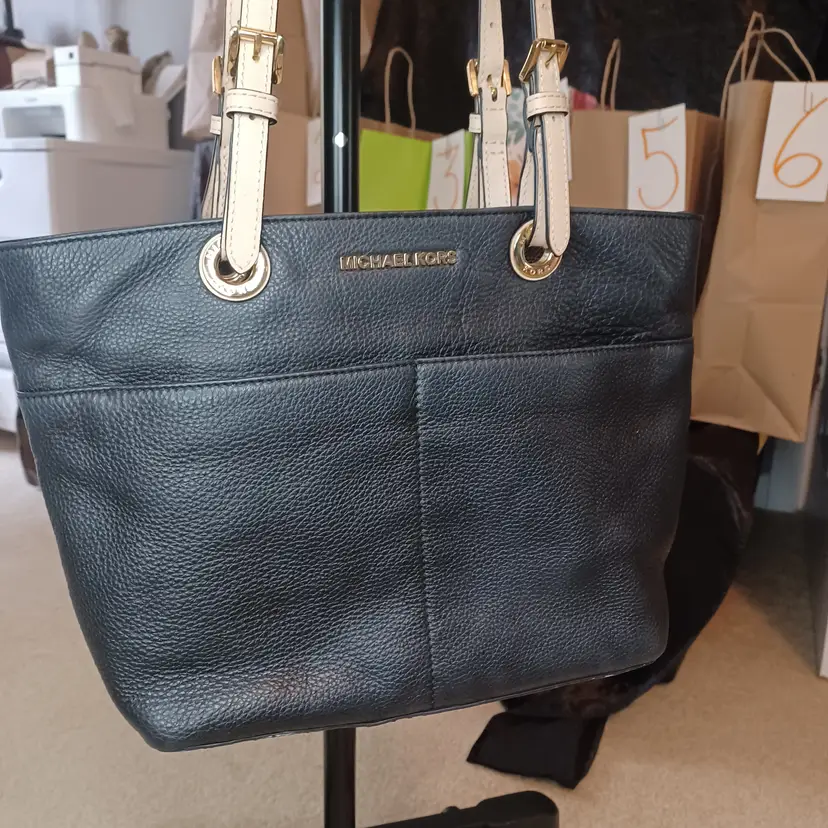 Michael Kors Bedford Pebbled leather. Black and tan. Clean bag. Handle wear (minimal). Bag is being conditioned now. Zipper close, exterior slip pockets and inter pockets. No bag divide (open compartment) 10.5x10x5. 9" drop