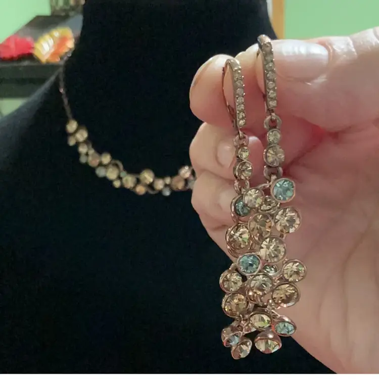 Dangling earrings measure 2’1/2 inches . Choker 16’~ lobster claw closure & Not Signed