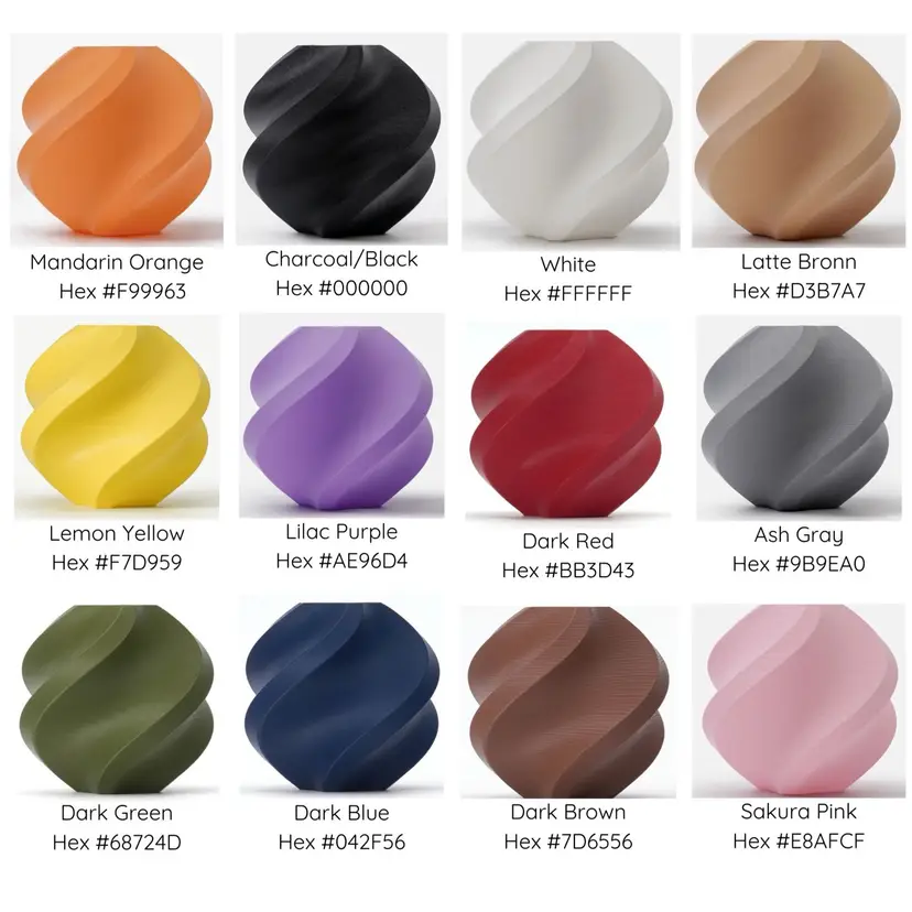 The lamp is 3D printed using eco-friendly, biodegradable PLA plastic filament. 3D printing is done by printing layer upon layer of filament to build up and create the print.
