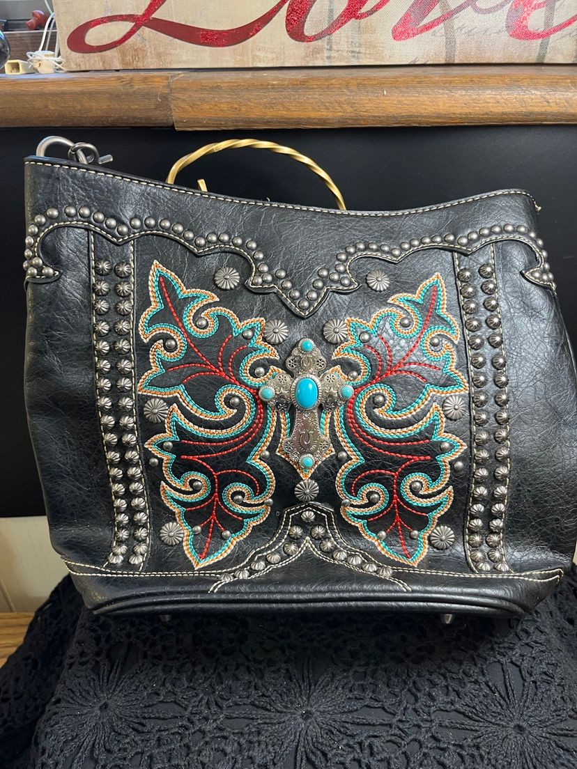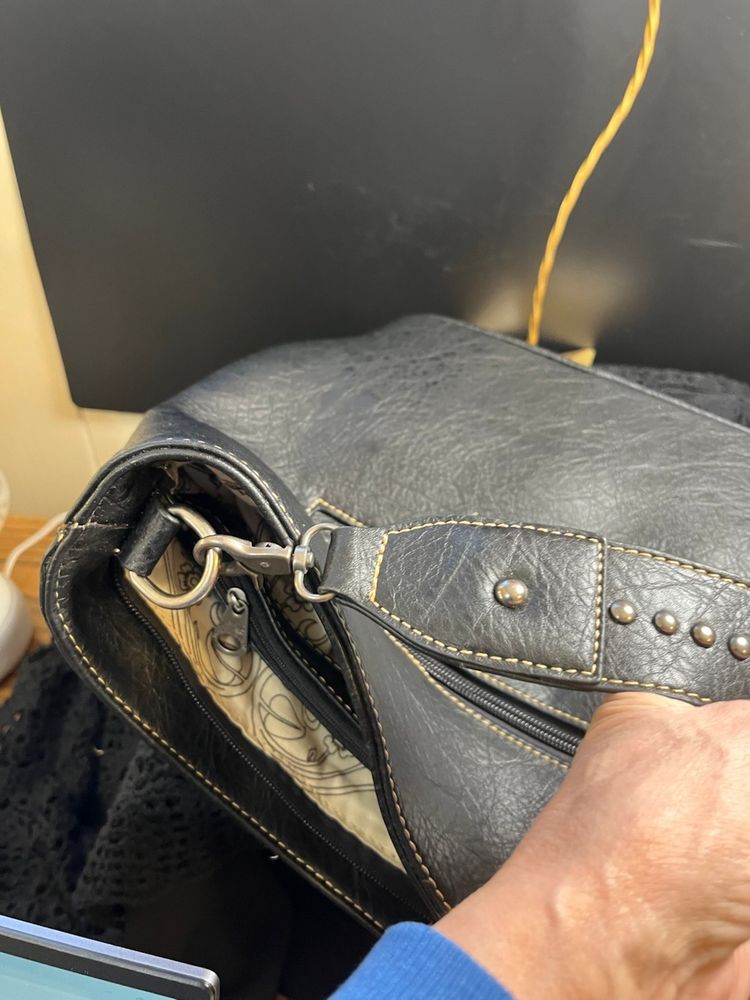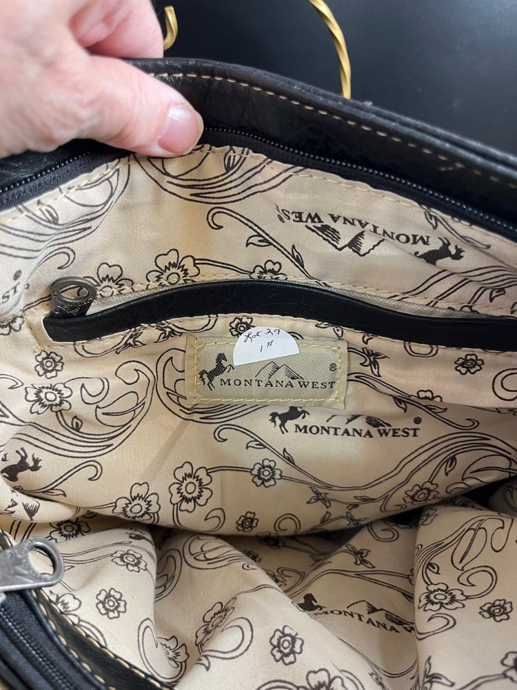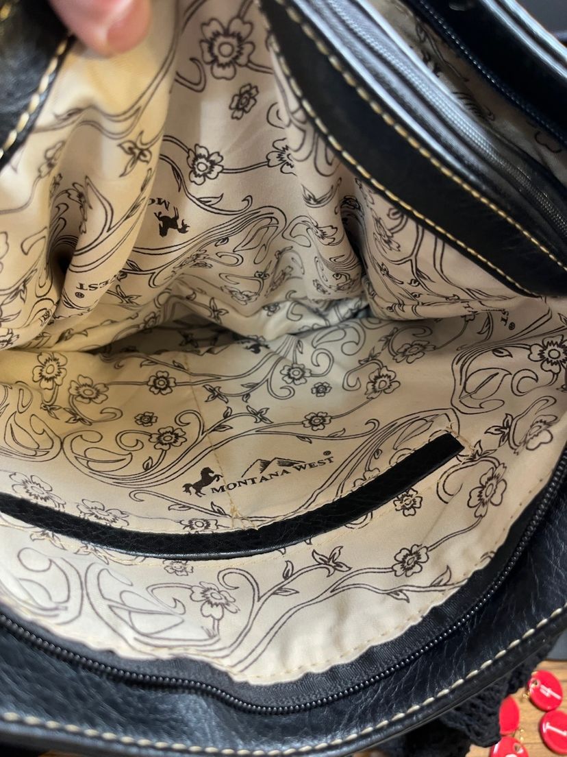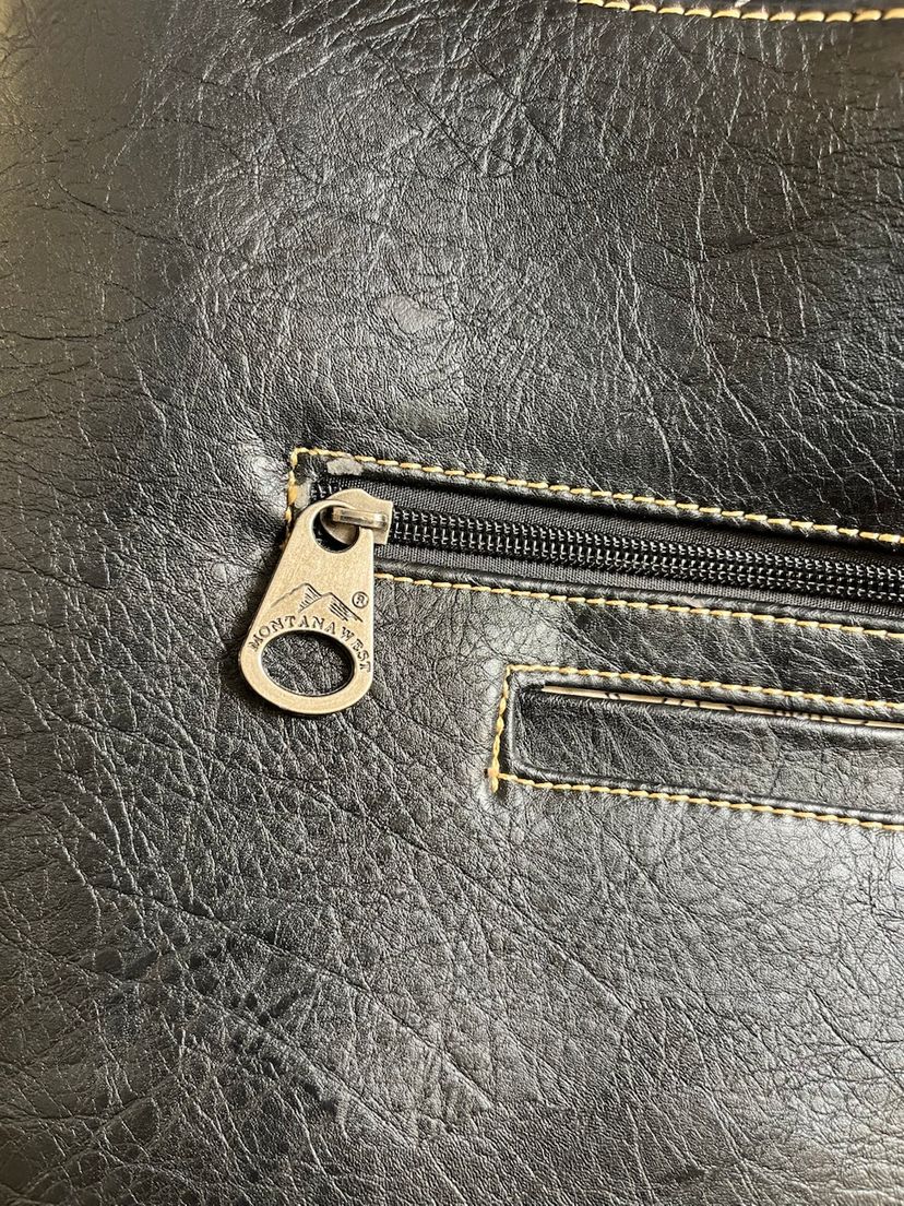 Several Inside compartments. All zippers are functional. If it was used, it was used VERY little. 11" x 13.5", approx 1 Lb