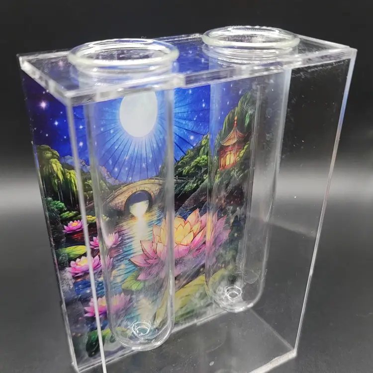 This listing is for an acrylic propagation station. Coming in at 3.5" wide, 5.25" tall and 2" inches deep, its narrow design perfectly fits in many windowsills. There are two removable glass vials included with this station, making them ideal for easy cleaning and refilling. Each vial is 1"x4.25"