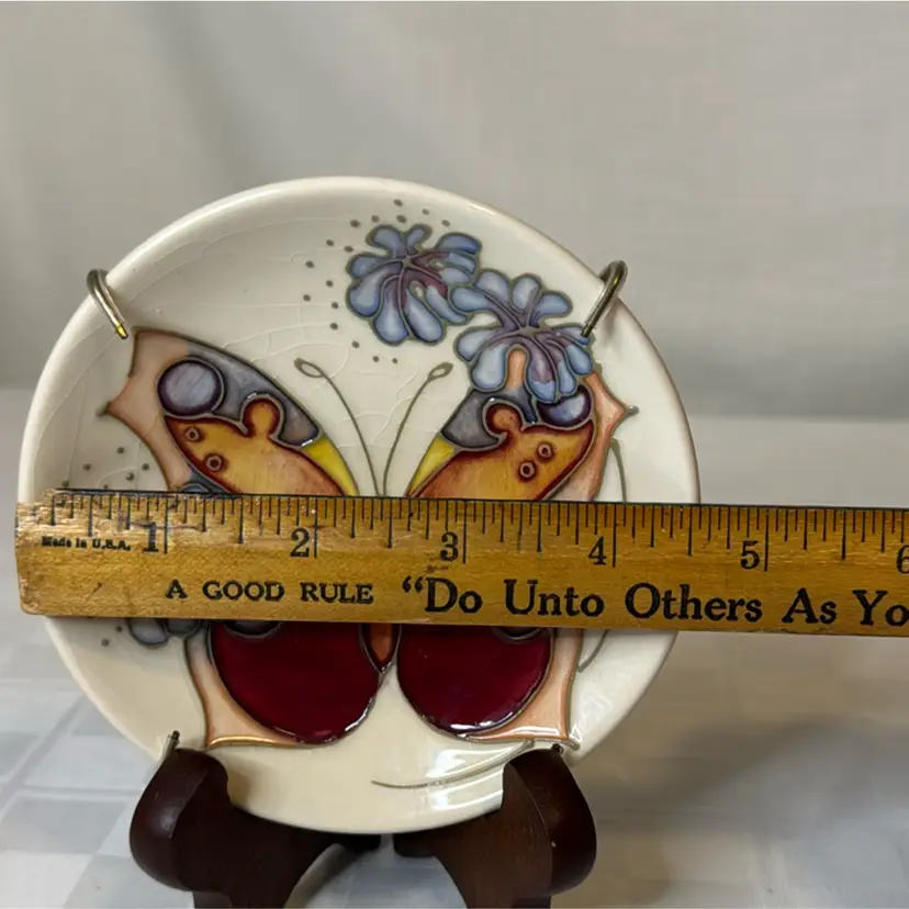 Moorcroft 'Butterfly' pattern decorative ceramic coaster, 4.5” Diameter