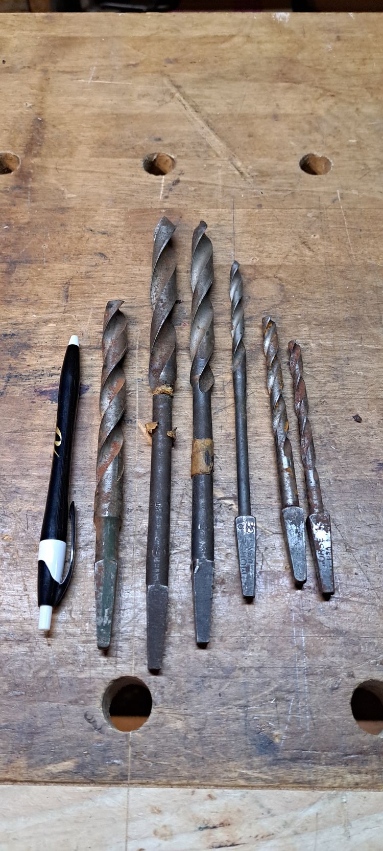 Lot of Morris brand Twist Bits, I think they all are Morris, but I can not see the names that well. Also I did not check the sizes, but these are in 32nd's rather then in 16ths like we use now. They look newish, may be used, but I do not think much.