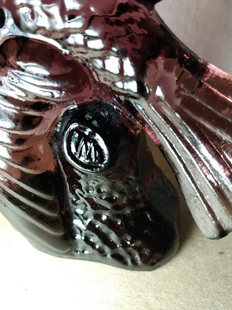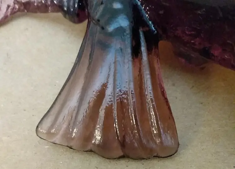 Lovely piece. Fair pre-owned condition with normal signs of use and wear; no visible chips or cracks however the underside of the tail is a little "rough" as shown in last pic. Beautiful color. Glows with UV 365.