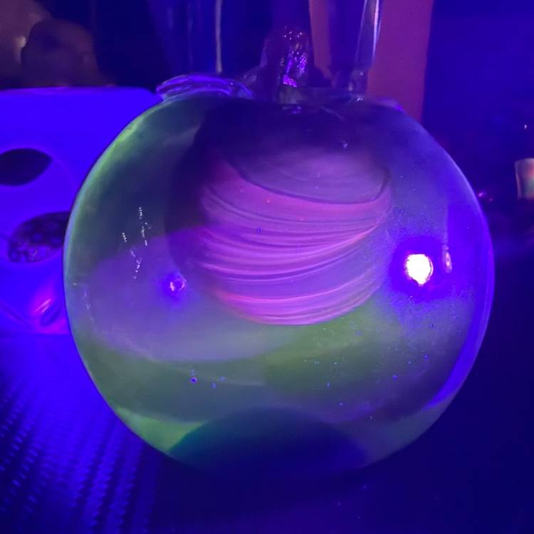 Excellent vintage condition. Very minimal shelf wear. Murano, Made In Italy sticker. UV glow.