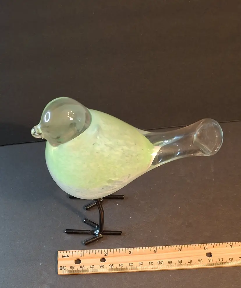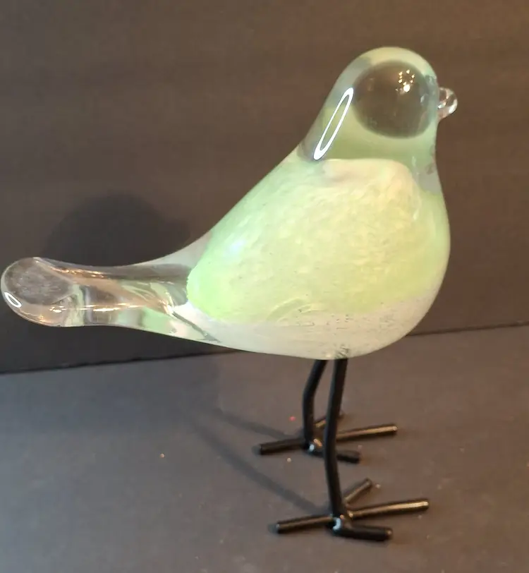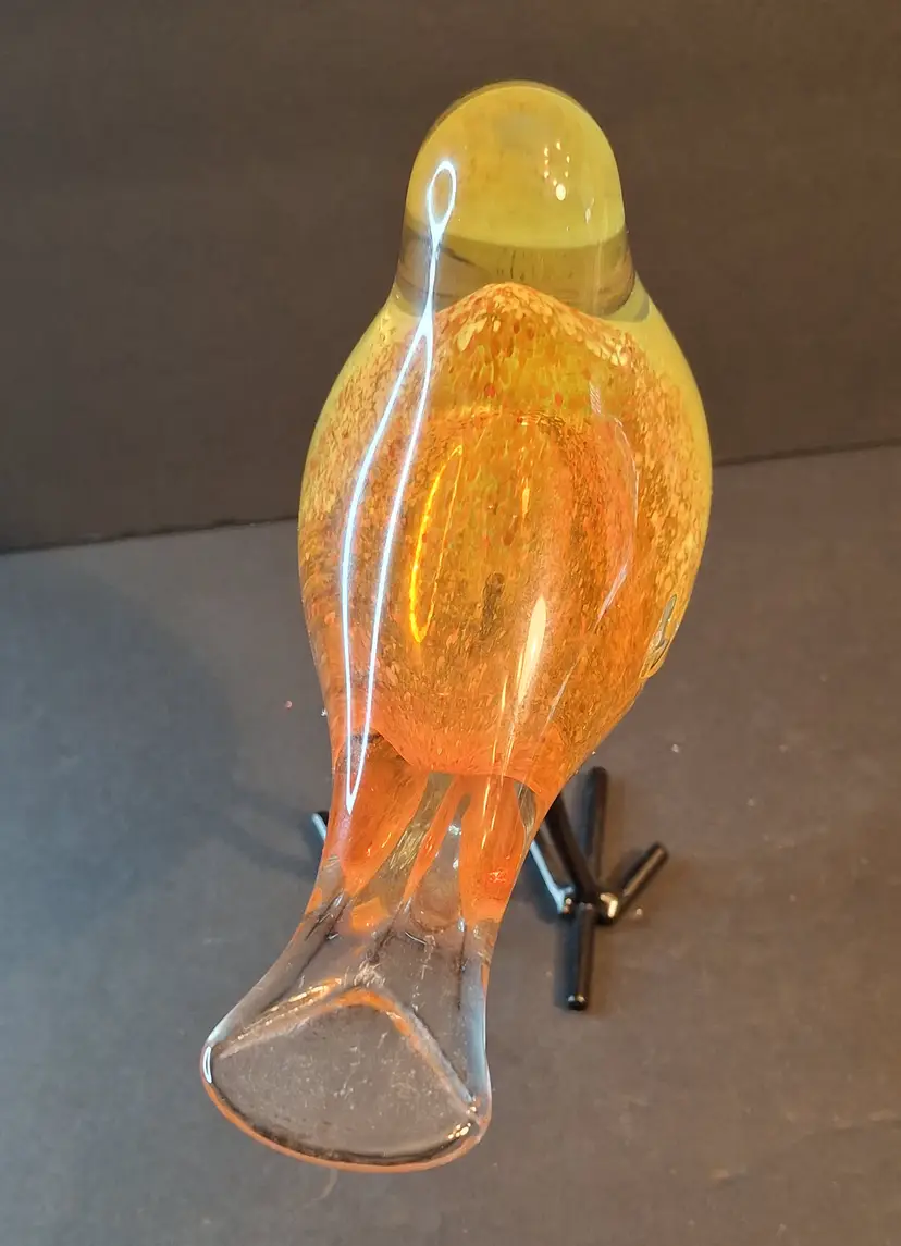 This vintage Murano glass figurine is a rare find for collectors of mid-century modern decor. The beautifully crafted piece features a lime green or an orange/yellow bird perched on wire legs and is made of high-quality glass materials. Handmade in Italy, this figurine is a unique addition to any collection and is sure to be a conversation starter. Perfect for bird lovers or those who appreciate fine art, this piece is a must-have for any serious collector.