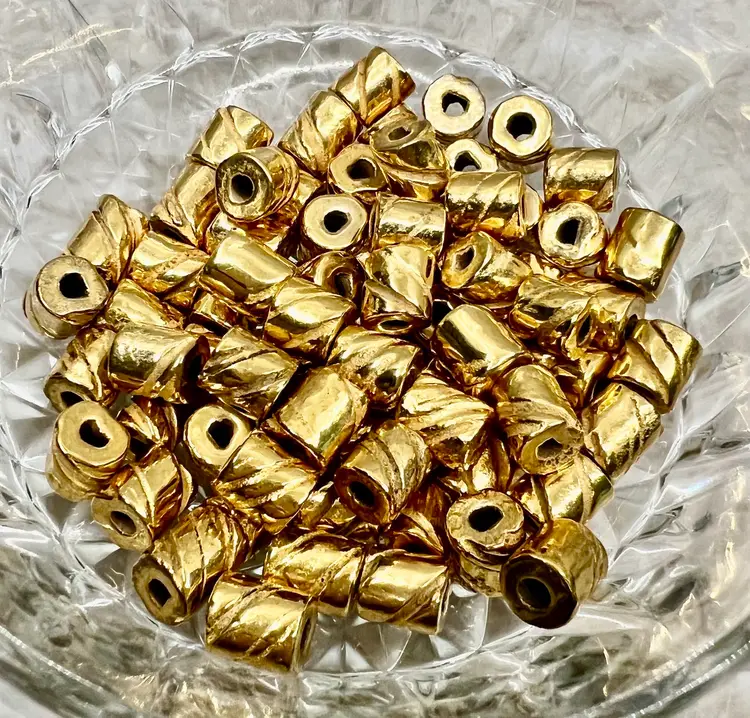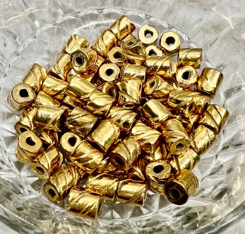 Mykonos Greek Ceramic Twisted Barrel, 24K GOLD Plated 8Pcs 10mm x 9mm DIY #J-3