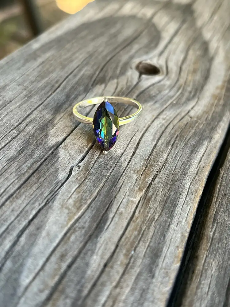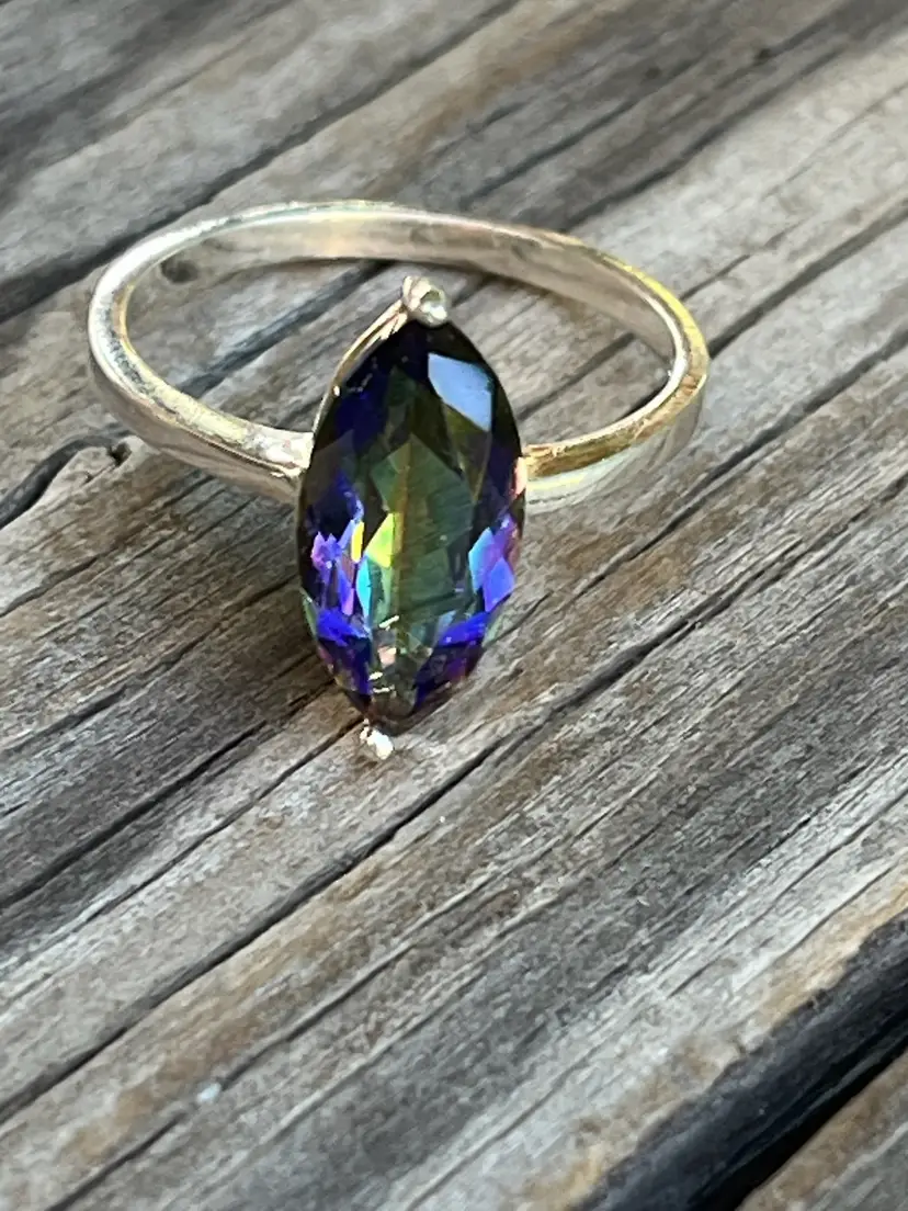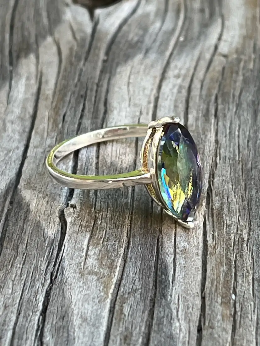 A pretty sparkling Magic Topaz ring. 925 Sterling Silver. Size 7 3/4. New old stock. The ring is approximately 15 years old.