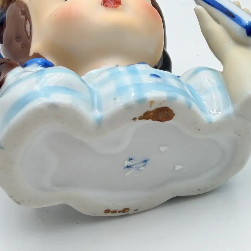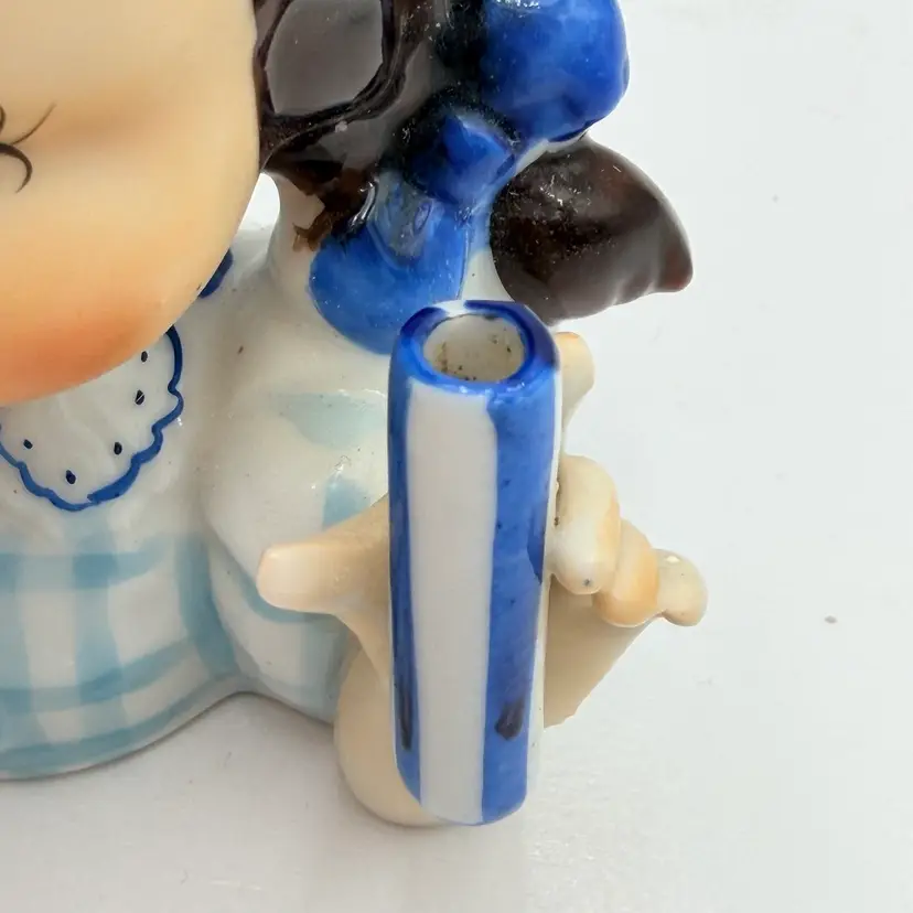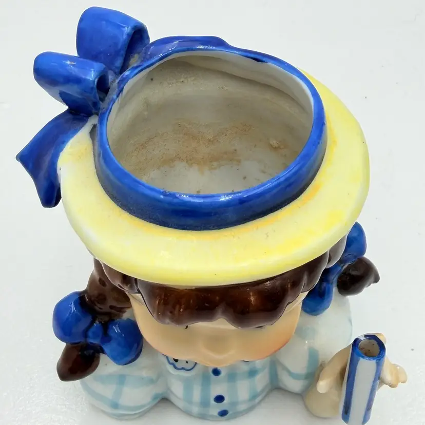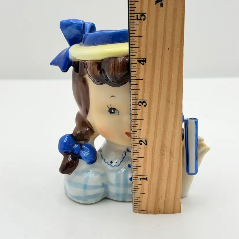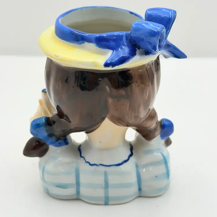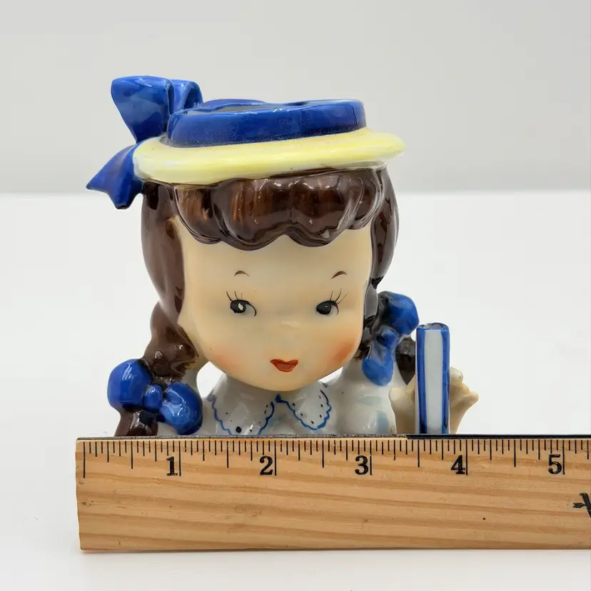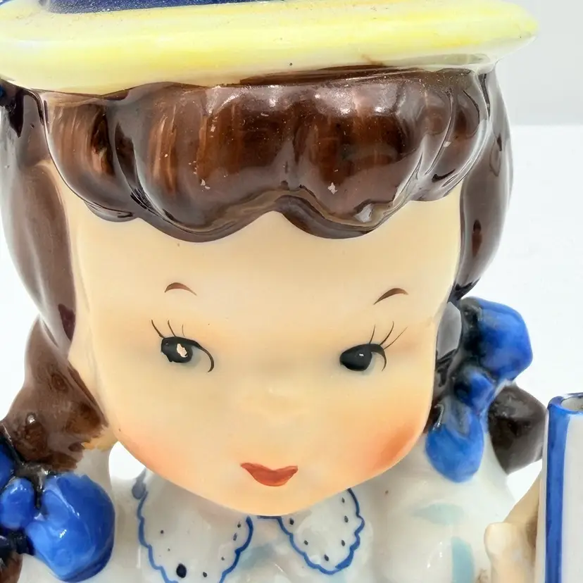 Napco Ceramic Brunette Girl With Blue Ribbon Head Vase