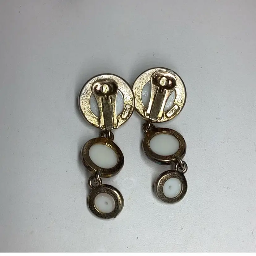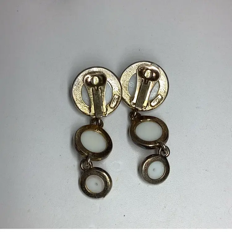 Napier Clipon Earrings Dangle 2” Brown & Off White