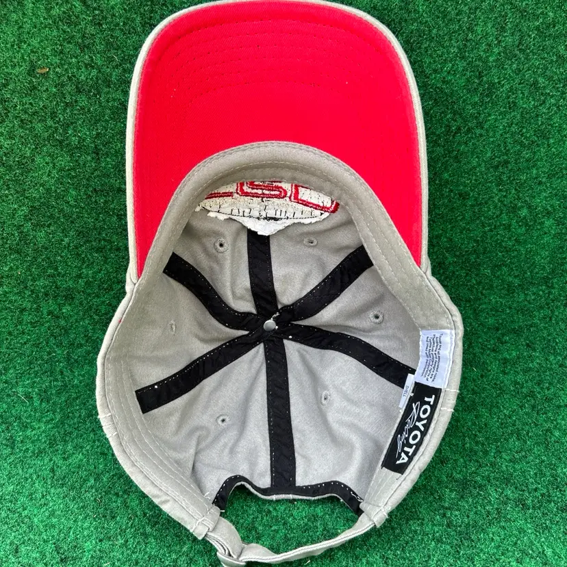 The NASCAR Toyota Racing Development TRD RARE Gray Hat is an officially licensed cap featuring the iconic Toyota Racing logo. This unisex adult hat is designed for fans of auto racing, specifically NASCAR, with the driver representing Toyota. Made in Bangladesh, this one-size gray hat is perfect for showing support for Toyota Racing during NASCAR events and tournaments.