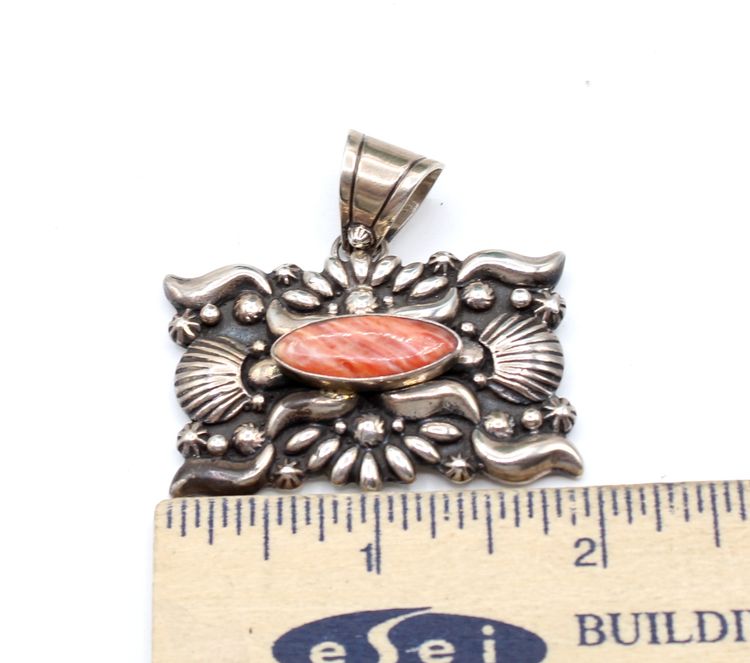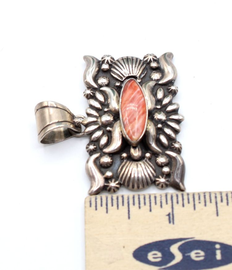 Fantastic signed with the letter B, unknown artist. Piece was out of Estate of Ken and Carolyn Osborne historians. Beautiful detail on the gallery, spiny set in a smooth bezel. Bale 8.72mm pendant is 1 7/8" x 1 1/8".